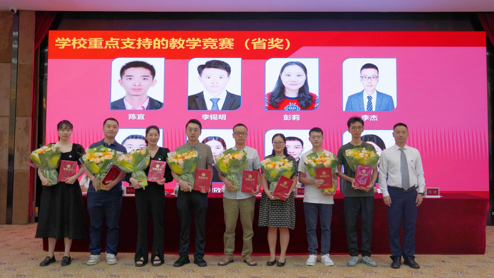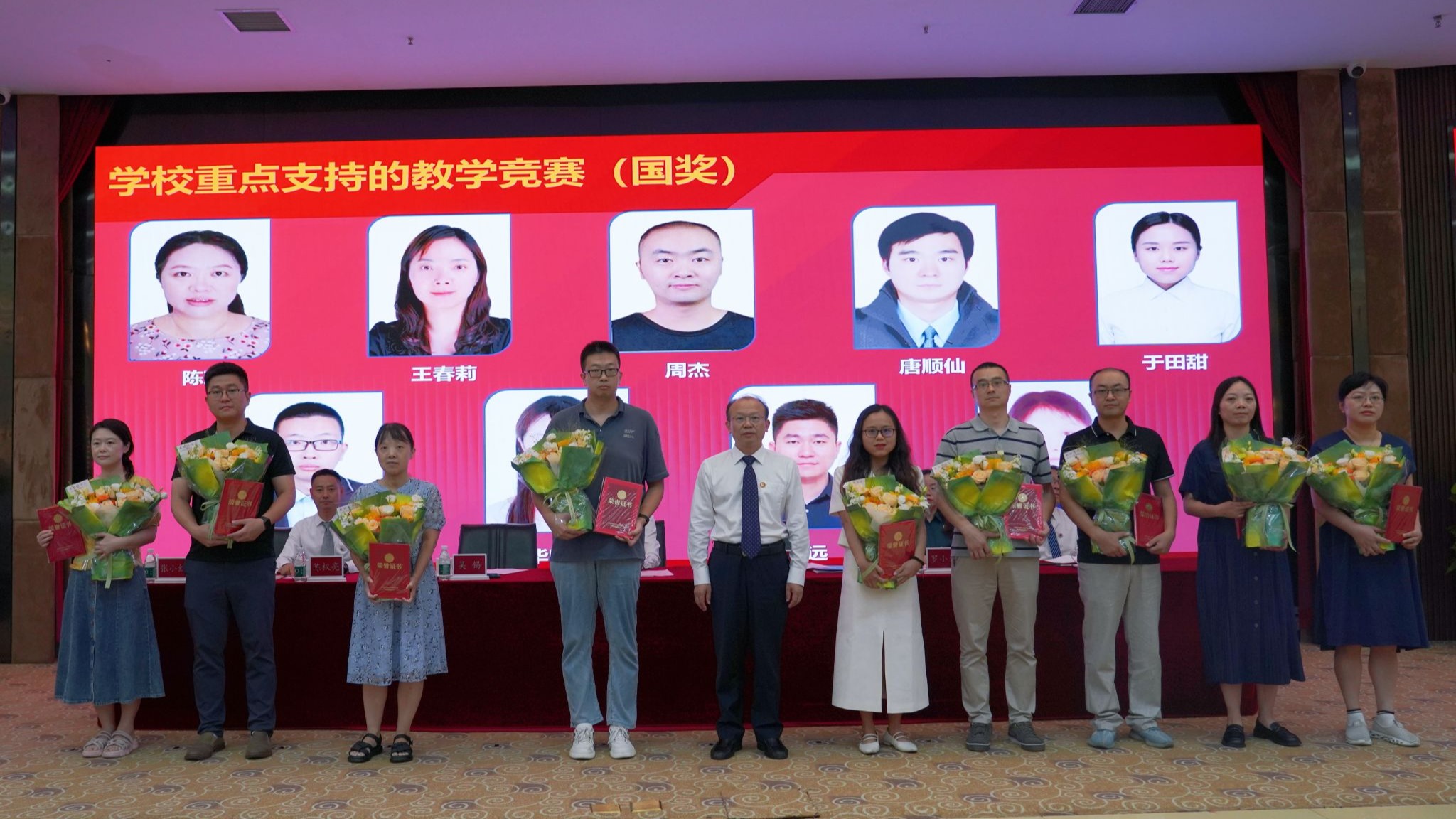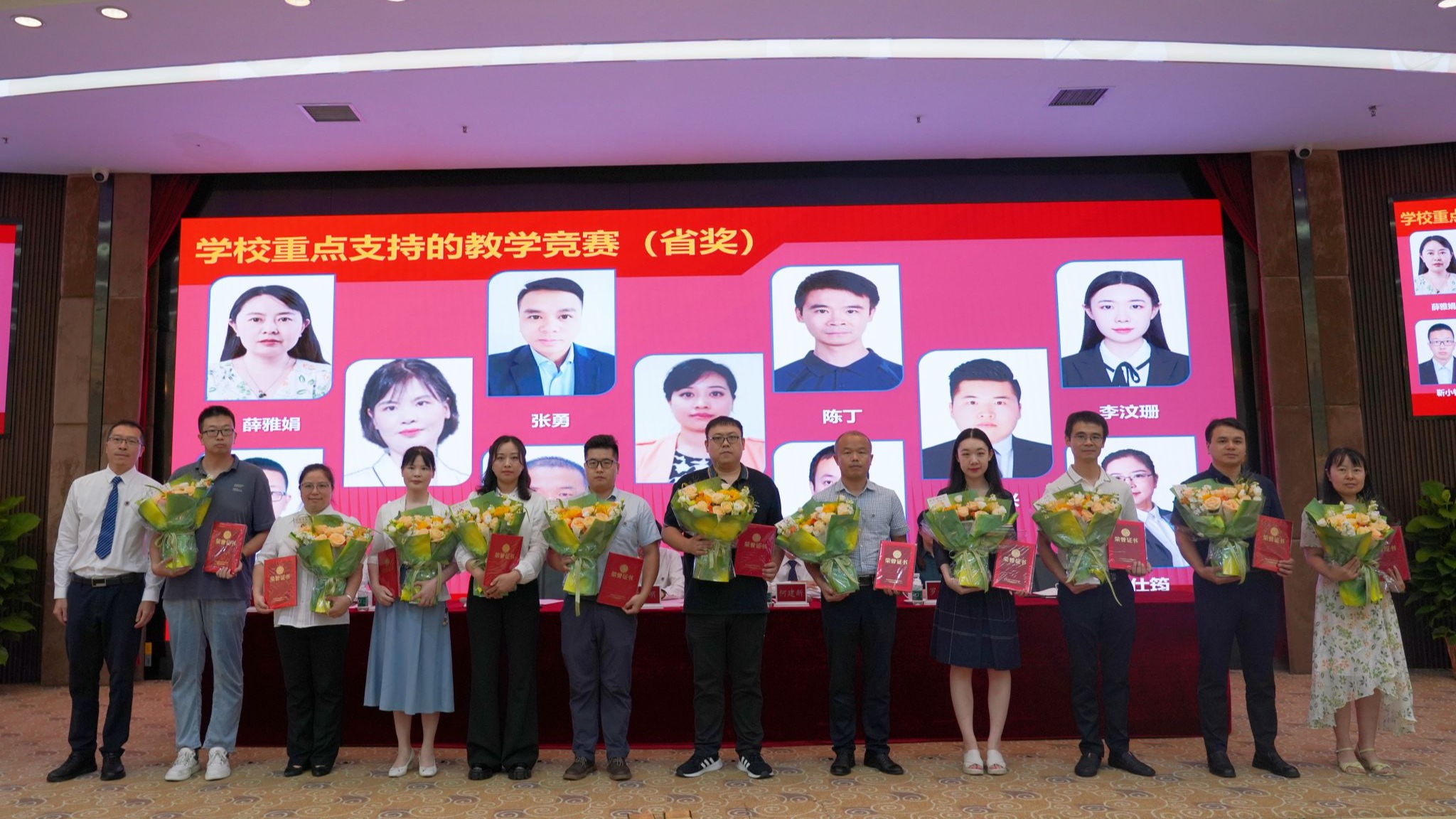 大会分6个批次对获奖教师进行表彰,与会校领导为获奖教师颁奖。