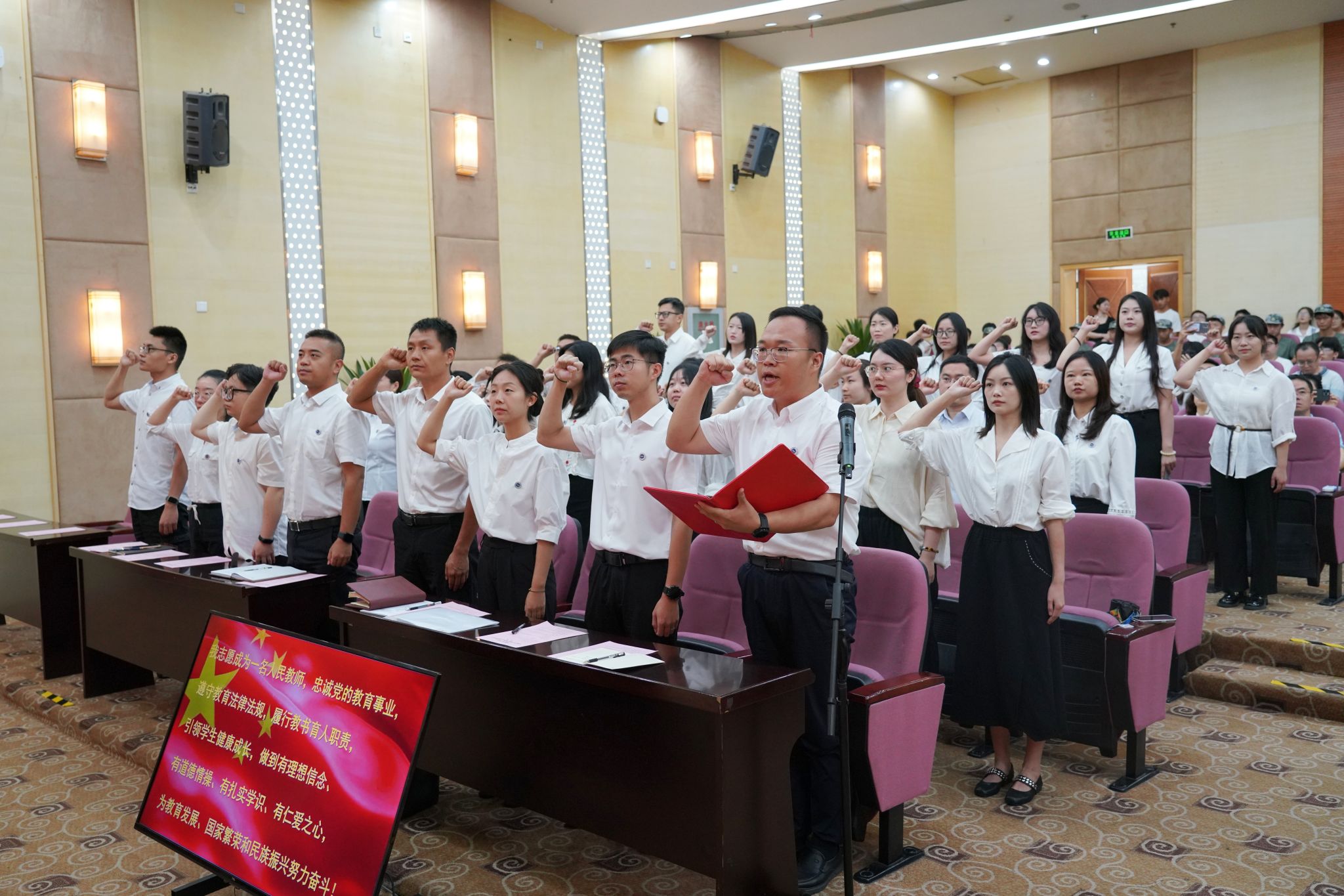 大会现场,新教师代表赵佑瑞领誓,全体新进教师郑重宣读师德承诺,以宣誓筑牢立德树人初心,激发广大教师争做“大先生”的崇高使命感。