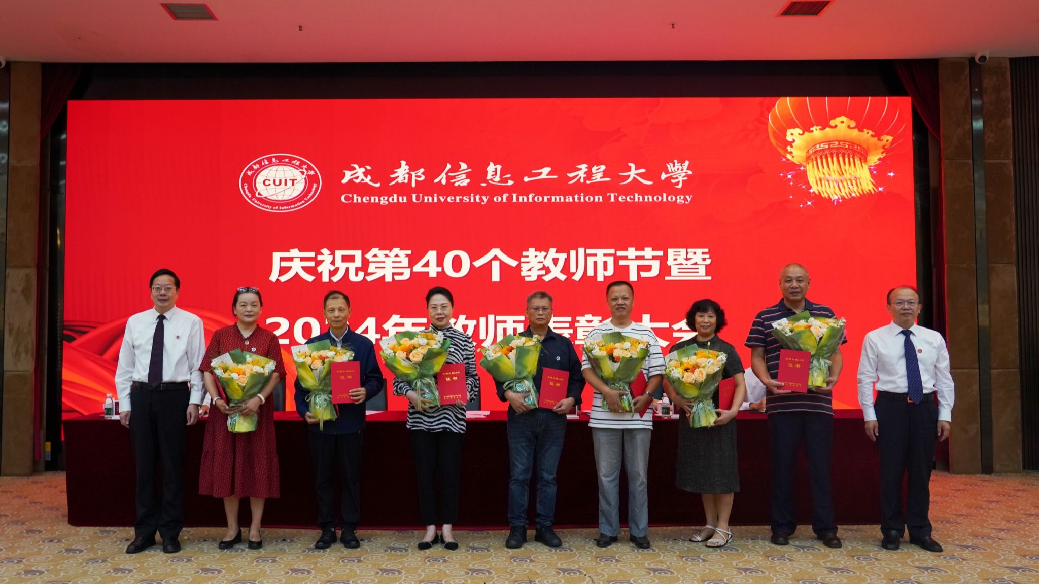 学校对在各个领域取得突出成绩、为学校发展作出卓越贡献的优秀教师予以表彰,学校校长何建新宣读了表彰文件。沈火明、吴锡遴选为享受国务院特殊津贴专家;杨玲荣获“全国优秀教师”称号;何建新、陈权亮、唐聃、周益民荣获“四川省学术和技术带头人”称号;罗小蓉获“四川省“三八红旗手”称号。何源荣获“四川省学术和技术带头后备人选”;张葛祥、张永清荣获省级人才称号;贾可荣获成都市人才称号。会上,表彰了在“全国高等学校电子信息类专业青年教师授课竞赛”“全国高校电子信息青年教师教学竞赛”“全国高等学校青年教师电路、信号与系统、电磁场课程教学竞赛”“电工电子基础课程实验教学案例设计竞赛”“外研社教学之星大赛”等教学竞赛中获得国赛奖项的14名教师代表;在“第七届四川省高校青年教师教学竞赛”“四川省高校教师教学创新大赛”“全国高等学校电子信息类专业青年教师授课竞赛预赛”“四川省师生信息素养提升实践活动”“四川省高校思想政治理论课教师‘精彩一课’讲课比赛”等教学竞赛中获得省级奖项的30名教师代表;荣获2024年度学校“最受学生欢迎教师”奖的10名优秀教师。学校还对2024年度获省委教育工委、四川省教育厅授予“光荣从教30年”称号的28名退休教师予以特别表彰。