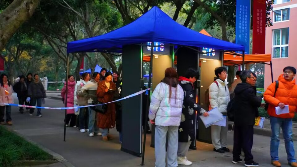 本次研招考试,开云官方app下载站考点严格落实上级要求,将考务工作的重心放在试卷保密以及考务安全上,构建了“六位一体”立体防护网,实现智能安检门全配备,两校区考点共配备11台智能安检门、设置了41个电子设备存放点(包括考务人员专用、研考考生专用、应急存放点)、两校区的每个考室均覆盖有手机 5G 信号屏蔽,共计设备100台,坚持人防、技防相结合,大力防范考试作弊,特别是 5G手机作弊行为,积极与移动运营商密切配合,采取多种手段防范高科技作弊情况的发生,有效确保了手机等电子信息设备“带不进、用不了、传不出”,从而实现“平安研考”;会同公安部门,加强试卷运输与存放管理,严格按照工作要求对保密室开展24小时4人不间断安全值守;考点各楼宇、楼层间配备有无线对讲机,供考点考务办公室、楼层工作人员、考务指挥中心、考点保卫、医务室沟通联系。确保考点组织实施工作安全平稳。