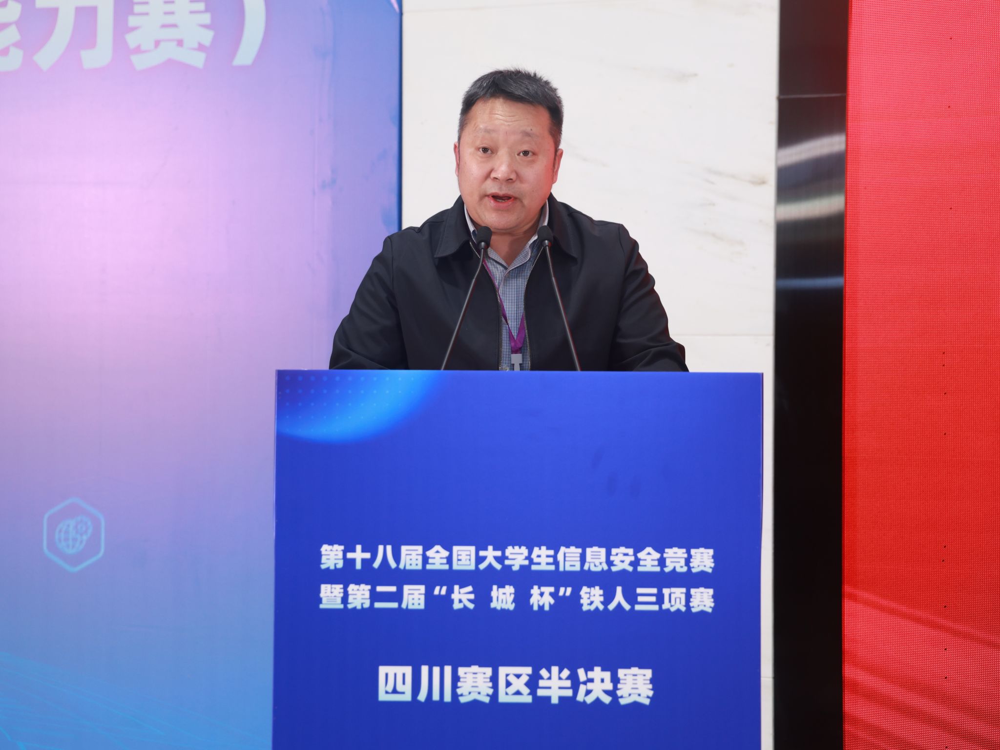 【本网讯】3月16日上午,第十八届全国大学生信息安全竞赛(创新实践能力赛)暨第二届长城杯铁人三项赛(防护赛)四川赛区半决赛在开云官方app下载站双流新型产业学院举行。赛事由中央网络安全和信息化委员会办公室、教育部、国家市场监督管理总局、国家数据局指导,中国信息安全测评中心和北京师范大学、中国电信集团有限公司、中国移动通信集团有限公司主办,开云官方app下载站、四川省网络空间安全协会承办,成都市双流区人民政府、中国电信股份有限公司四川分公司、中国电子科技网络信息安全有限公司协办。