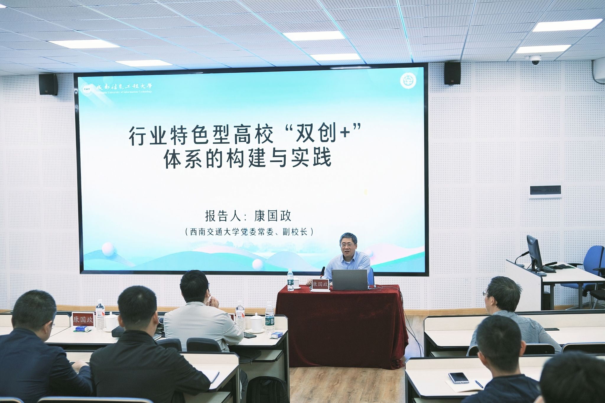 【本网讯】4月14日下午,西南交通大学党委常委、副校长康国政应邀到校作题为《行业特色型高校“双创+”体系的构建与实践》专题讲座。学校副校长陈权亮,教务处、工程实践中心(创新创业学院)、招生就业处、校团委、双流新型产业学院管委会相关负责人,各学院分管创新创业工作副院长、分管学生工作副书记,各学院参与创新创业工作的教师及相关工作人员参加活动。