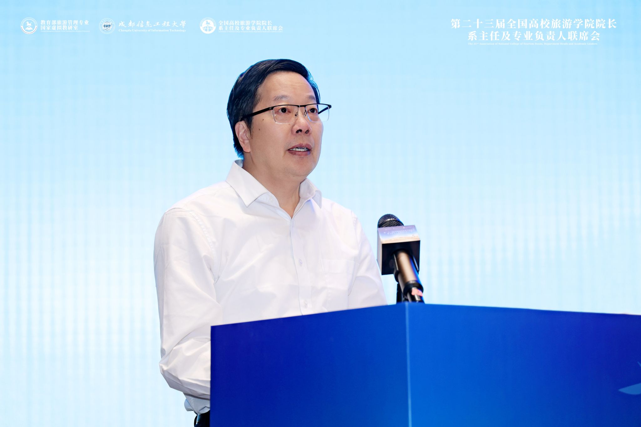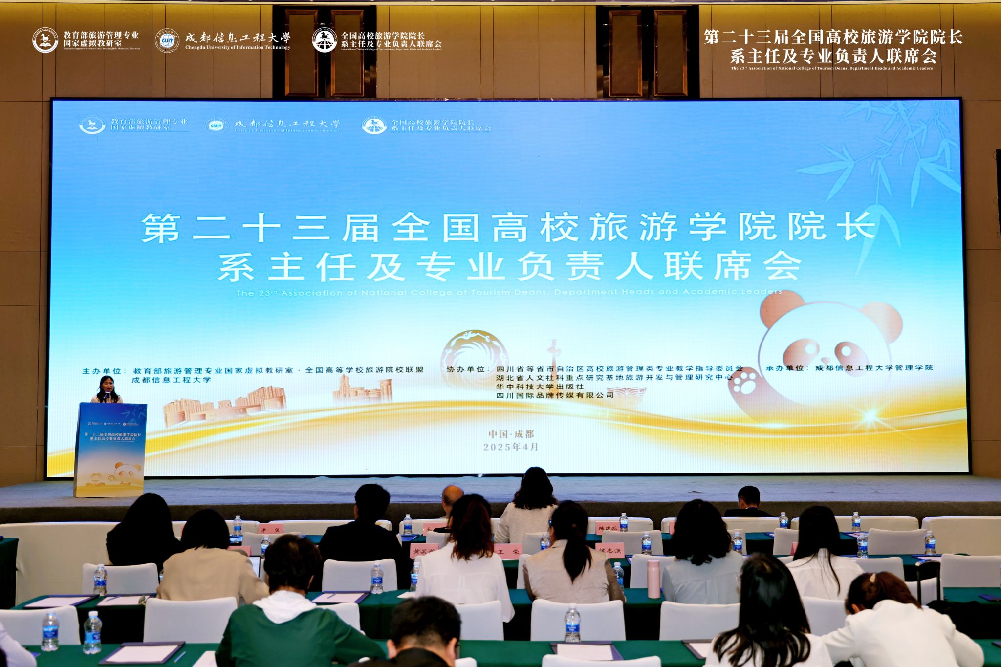 【本网讯】4月18日至20日,第二十三届全国高校旅游学院院长、系主任及专业负责人联席会在成都召开。本次大会由教育部旅游管理专业国家虚拟教研室、全国高等学校旅游院校联盟、开云官方app下载站共同主办,四川省等省市自治区高校旅游管理类专业教学指导委员会、湖北省人文社科重点研究基地旅游开发与管理研究中心、华中科技大学出版社、四川国际品牌传媒有限公司协办,学校管理学院承办。来自全国170多所高校的400余位旅游行业专家、学者参加会议,会议围绕“全方位创新助推旅游教育强国建设”主题,设置了开云官方app下载站才艺秀场、开幕式、主题演讲、专题发言、圆桌论坛环节。