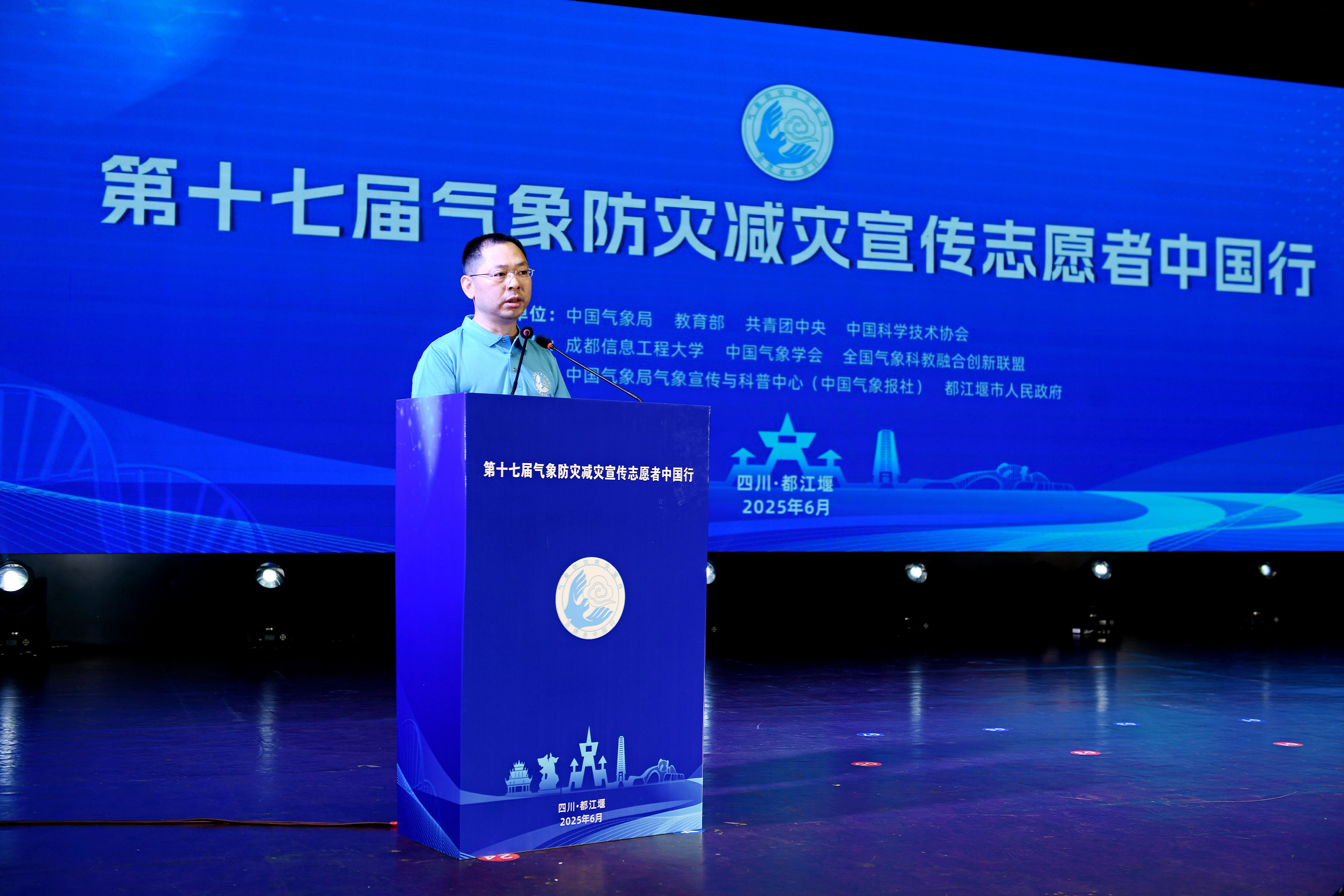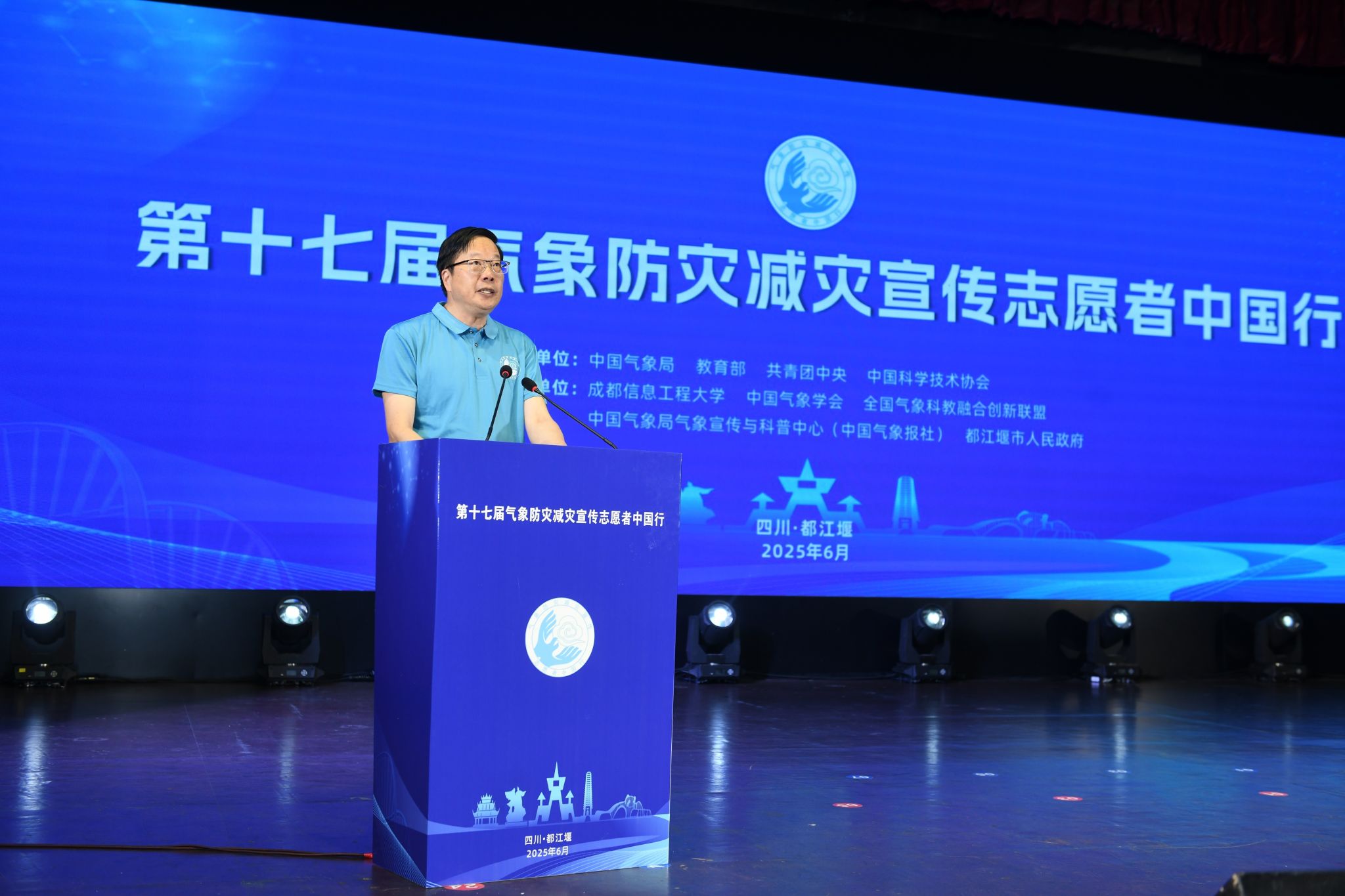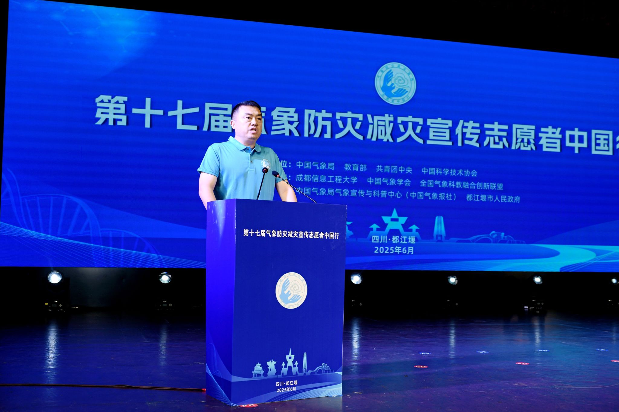 【本网讯】6月20日上午,由中国气象局、教育部、共青团中央、中国科学技术协会主办,开云官方app下载站、中国气象学会秘书处、全国气象科教融合创新联盟秘书处、中国气象局气象宣传与科普中心(中国气象报社)、都江堰市人民政府承办的第十七届气象防灾减灾宣传志愿者中国行启动仪式暨工作交流会在四川省都江堰市举行。