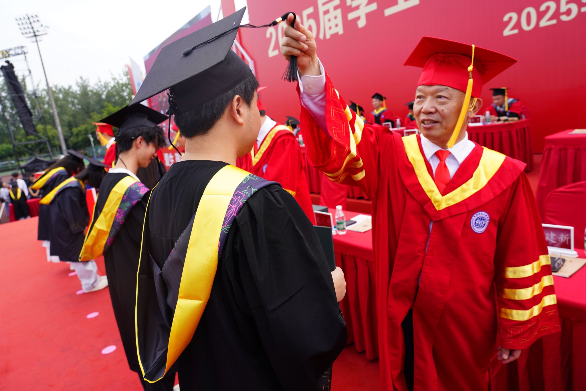 何建新以“定力为锚,自信作帆 在笃行不怠中书写成信人的不凡答卷”为题发表讲话。他表示,2025届毕业生回望在校时光,是祖国发展的见证者,更是母校进步的亲历者。学校的每一次跨越,都深深铭刻着师生同心、携手共进的印记。在这段共同奋进的岁月里,同学们不仅收获了宝贵的人生历练,更一次次突破自我,取得了值得骄傲的成绩。