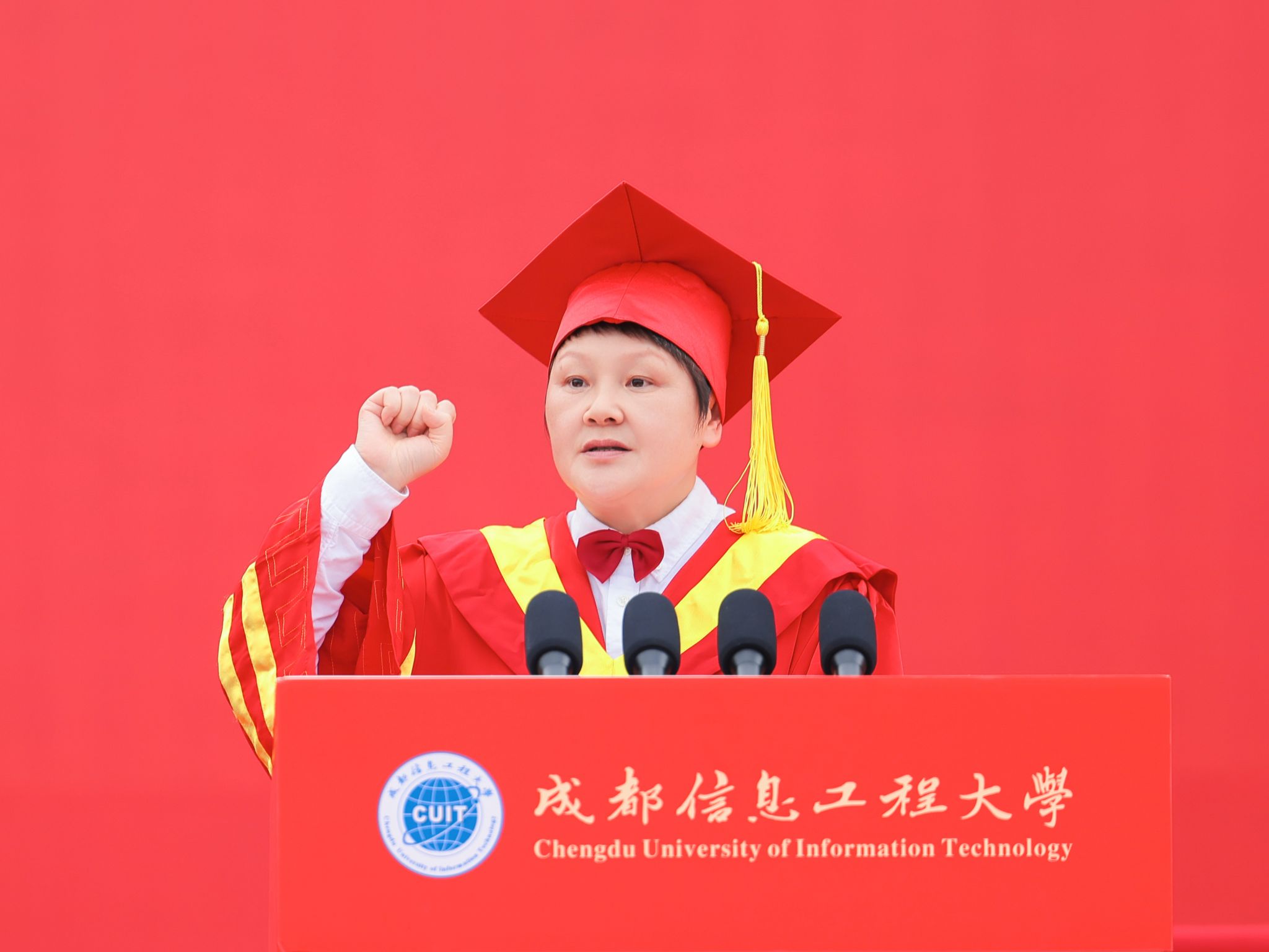罗小蓉宣读了准予2025届学生毕业及授位的文件。她祝贺1101名硕士研究生、5100名本科学生同学们顺利毕业并获得学位。
