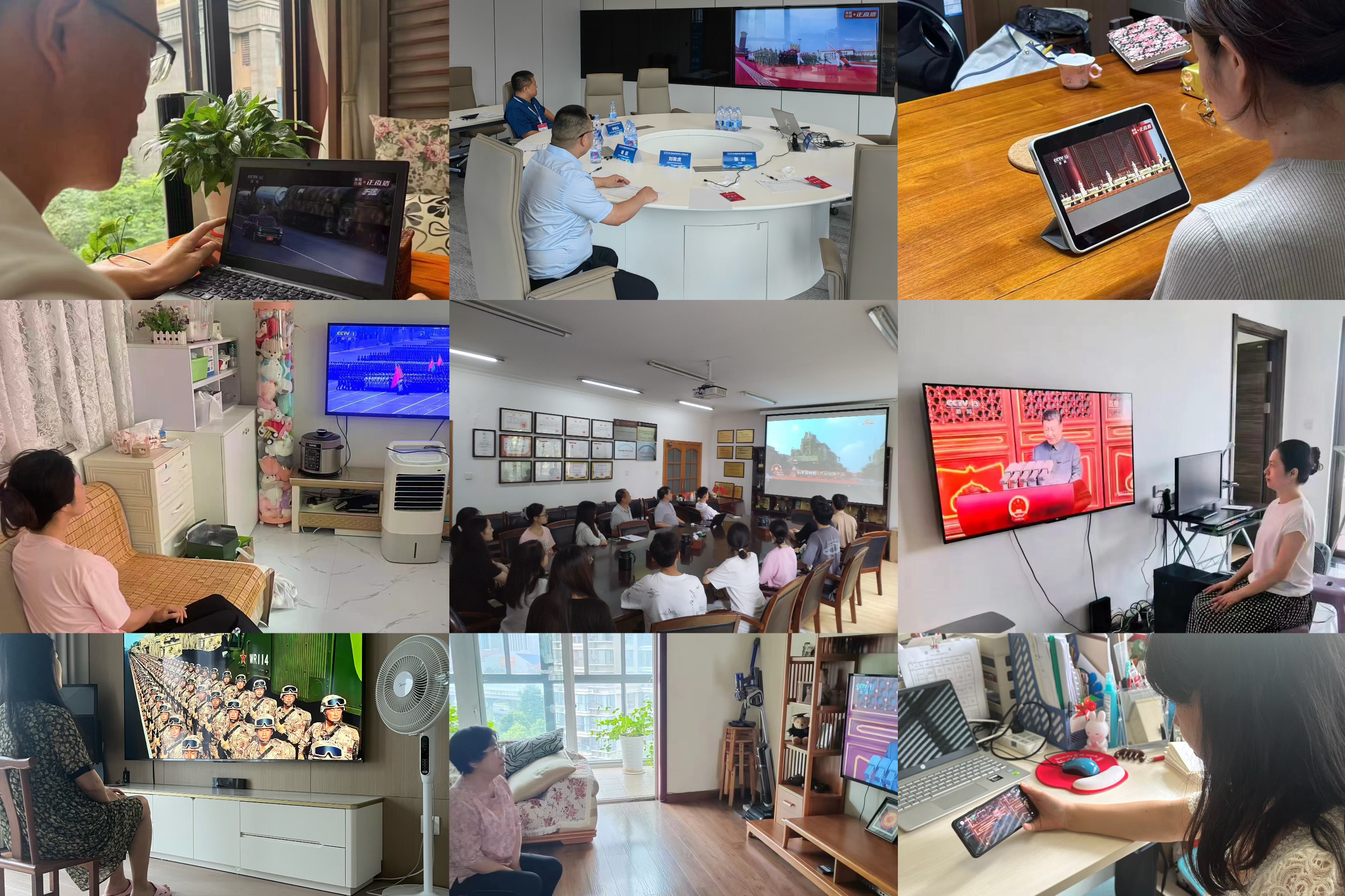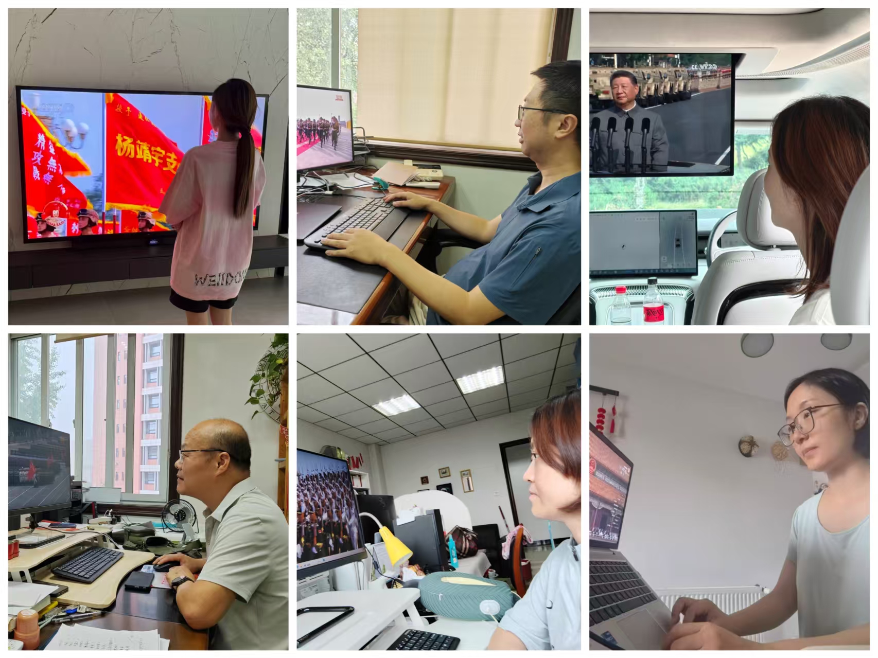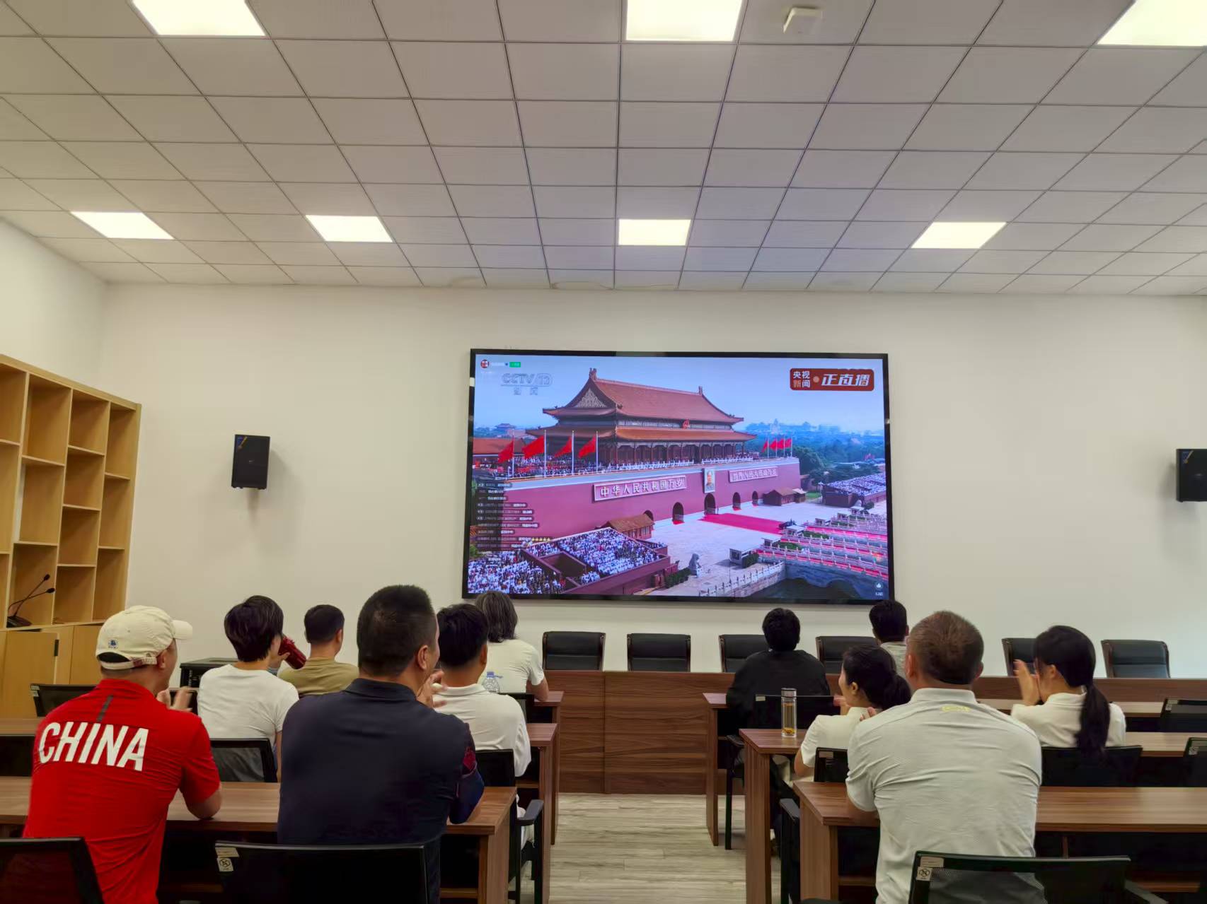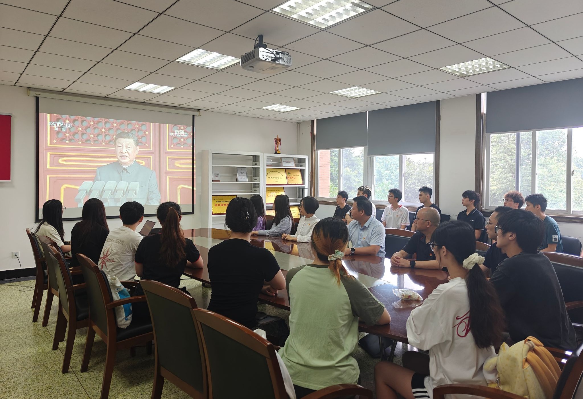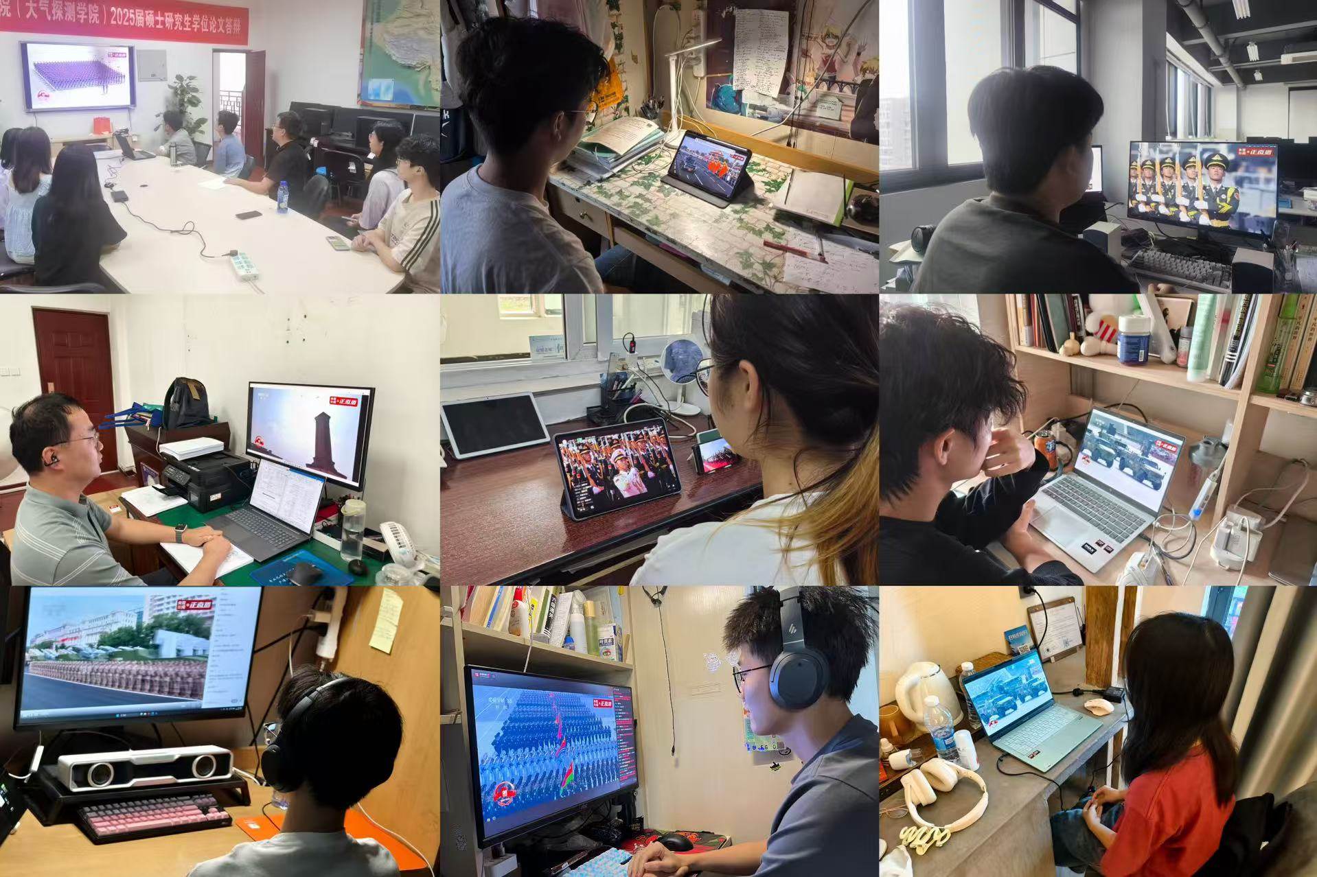 【本网讯】9月3日上午,纪念中国人民抗日战争暨世界反法西斯战争胜利80周年大会在北京天安门广场隆重举行。学校组织在校师生在航空港校区行政楼第七会议室集中观看大会直播,党委副书记杨奇才,党委常委、副校长陈权亮,党政办公室、党委宣传部、研究生院、计划财务处、信息中心等部门以及部分学院师生代表参加了集中观看。校内各单位组织师生在会议室、办公室、教室、寝室等通过电台、电视、互联网等媒体平台收听收看大会直播,并通过微信群、QQ群等学习工作群交流感想和分享心得体会,共同铭记历史、缅怀先烈、珍爱和平、开创未来。
