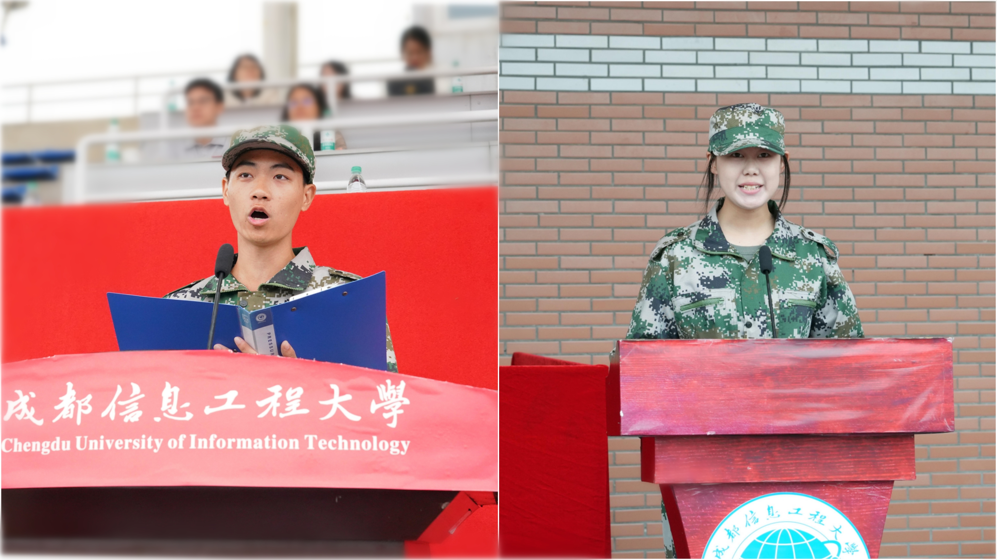 网络空间安全学院学生曾宏江和文化艺术学院学生张婧茹代表2025级新生作了发言。他们表示,将带着军训中淬炼出的坚韧与勇气,在课堂中积极思考、在活动中勇于尝试、在成长中不断自省,不负家国,不负师长,不负青春。
