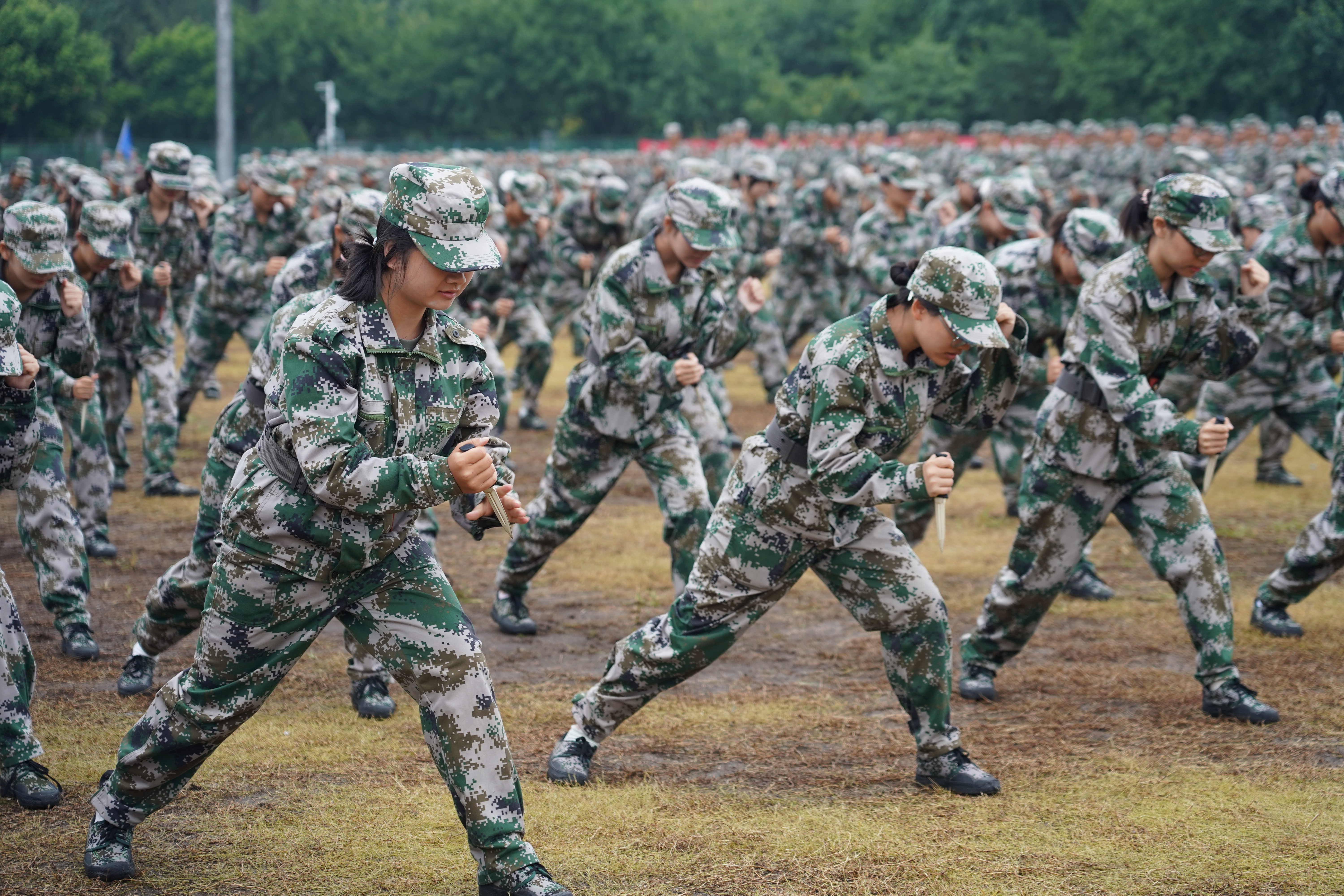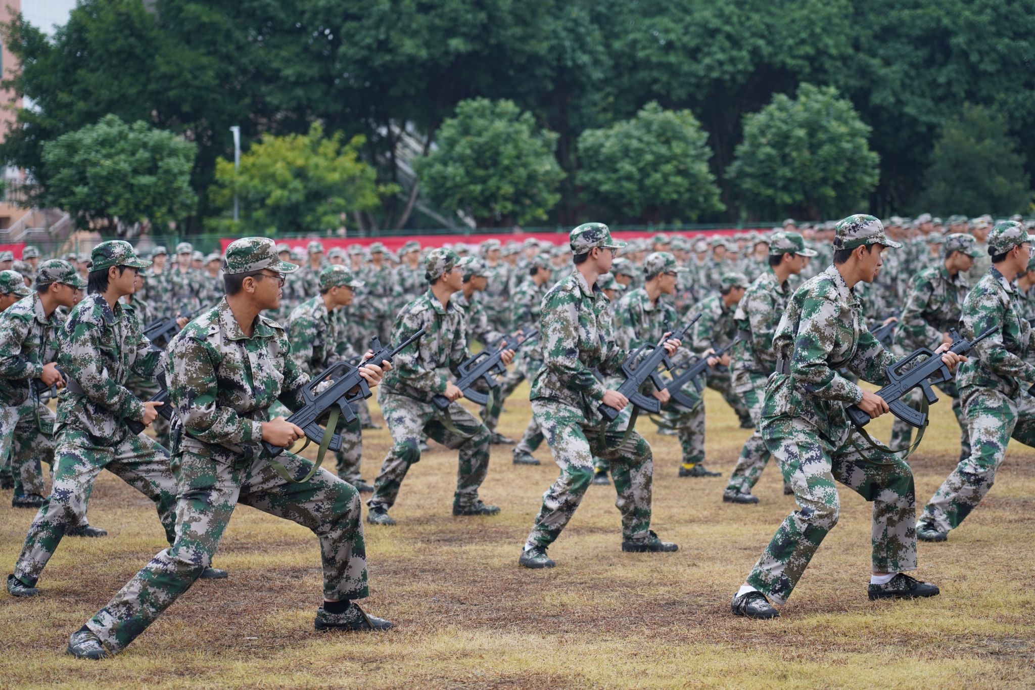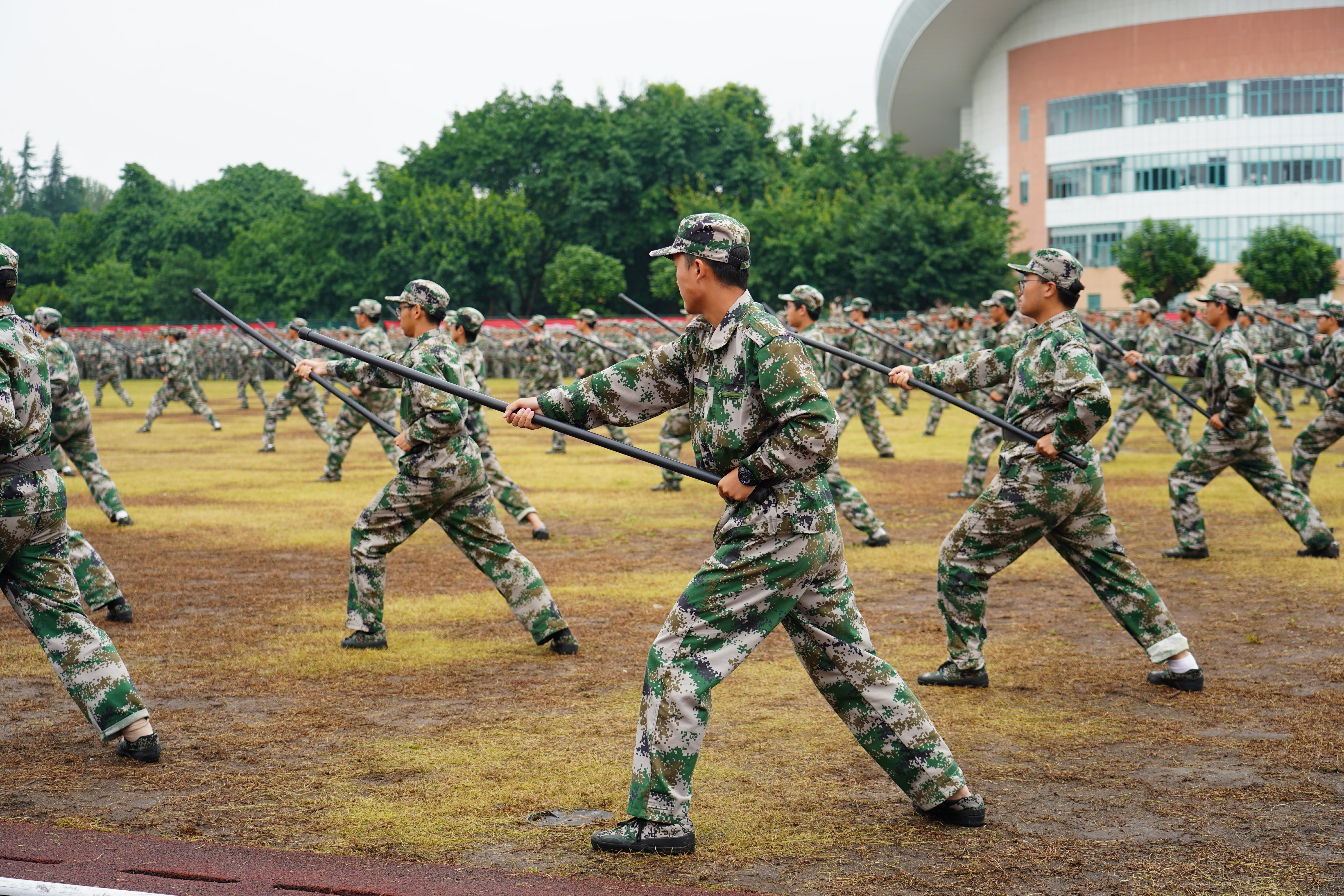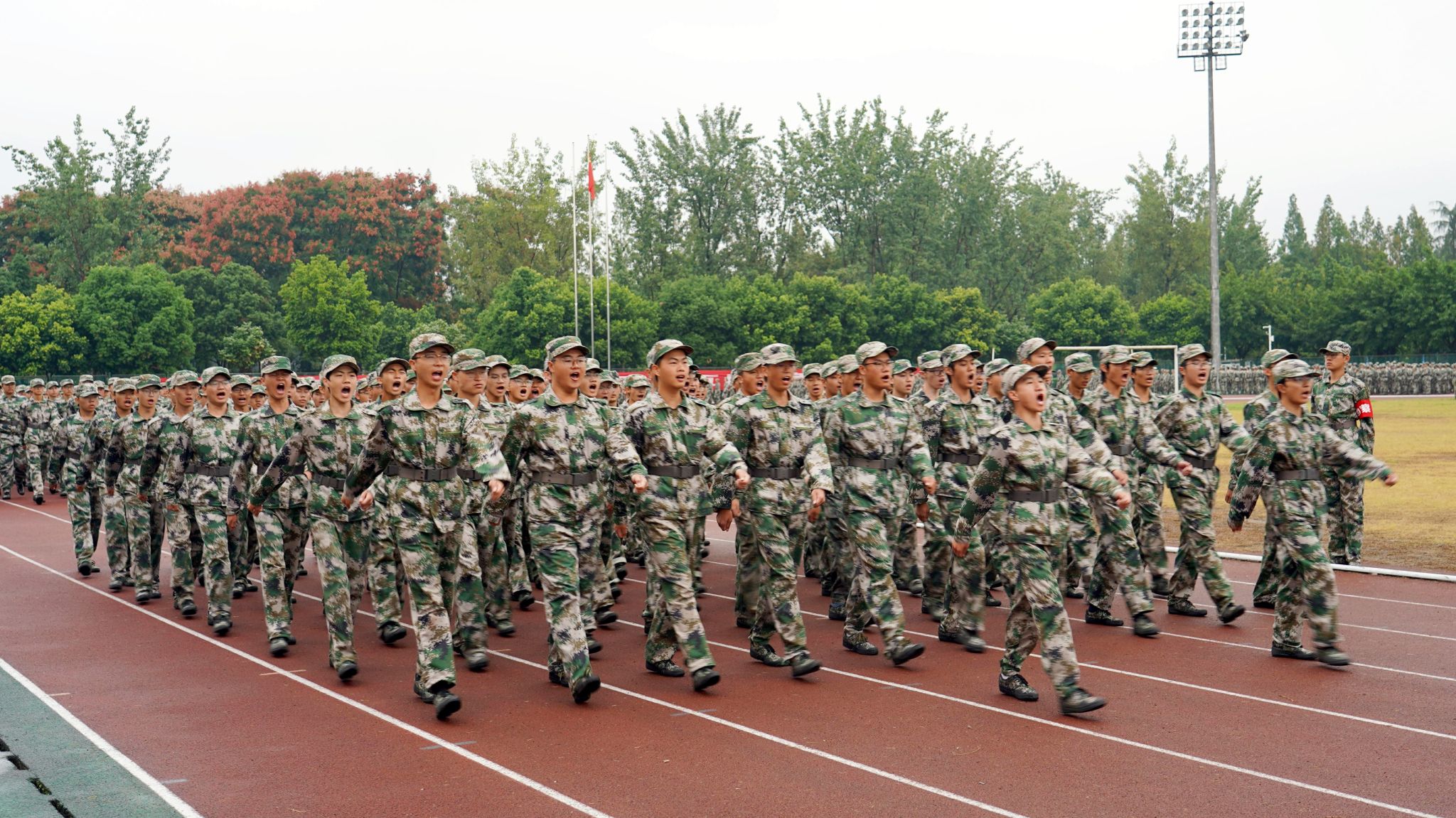 2025级同学们步伐整齐、口号嘹亮、精神饱满地经过检阅台。匕首操方队虎虎生威、巾帼不让须眉;军体拳方队整齐划一,酷飒中带着自信,豪迈中带着坚韧。