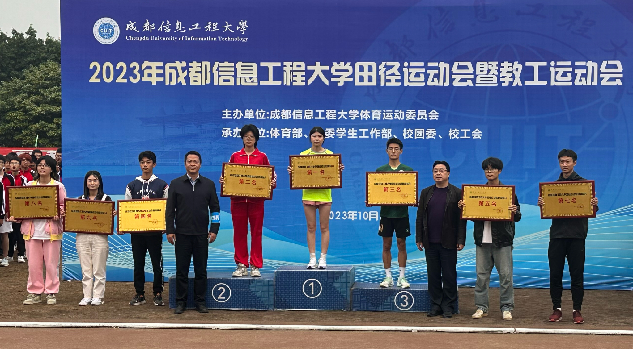 资源环境学院、应用数学学院、区块链产业学院、马克思主义学院、外国语学院、网络空间安全学院、统计学院、大气科学学院荣获体育道德风尚奖。