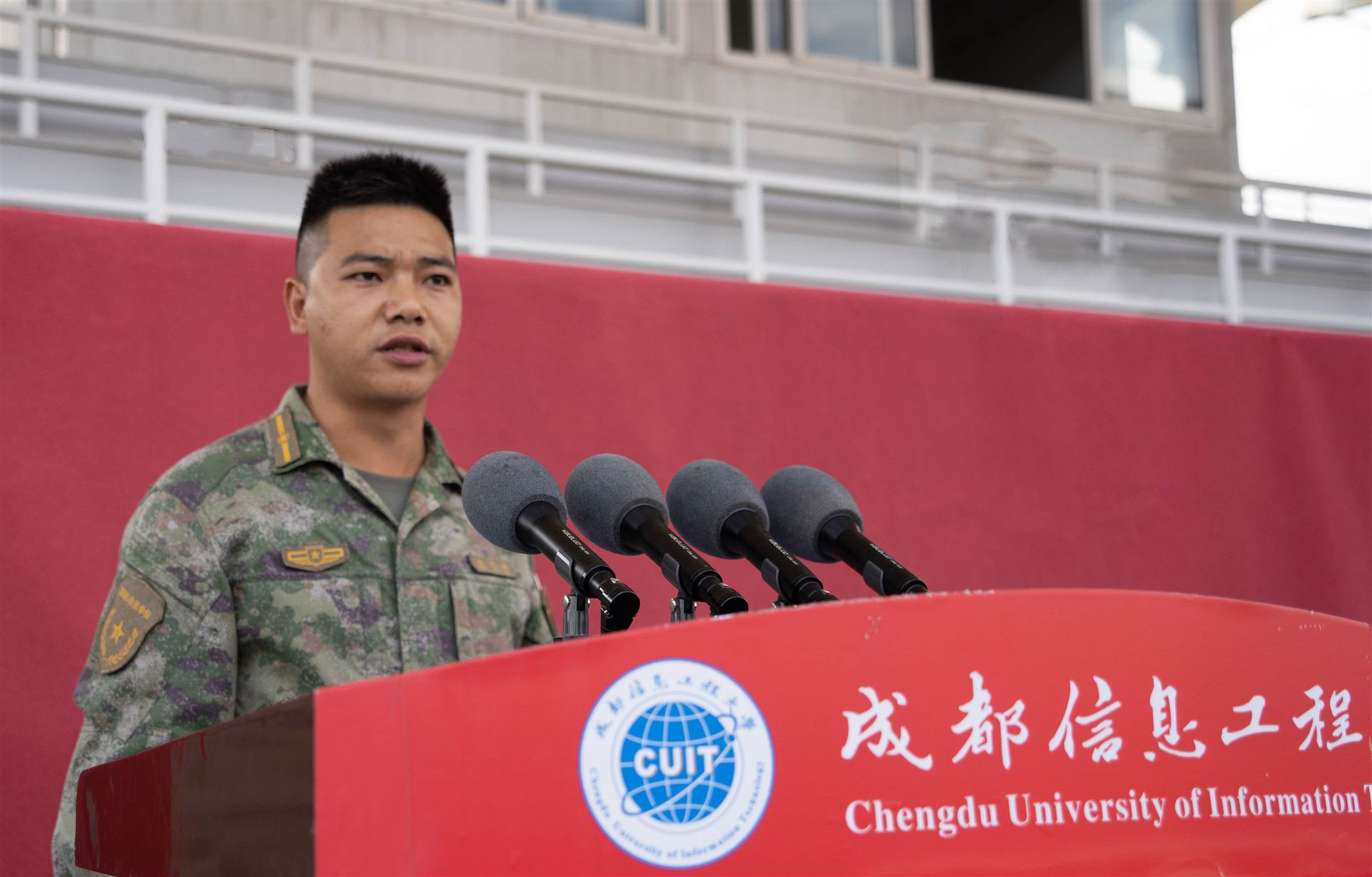 应用数学学院数学类专业的谢涵同学、管理学院会计学专业的张峥晖同学作为2023级新生代表发言。他们表示,军训是大学生肩负的时代赋予的神圣使命,能帮助同学们坚定意志、涵养志气、锻炼体魄。他们号召同学们秉承“成于大气,信达天下”的校训精神,践行“尊师、好学、励志、笃行”的学风,迎接挑战,成为有理想、敢担当、能吃苦、肯奋斗,不负时代、不负韶华的新时代好青年。