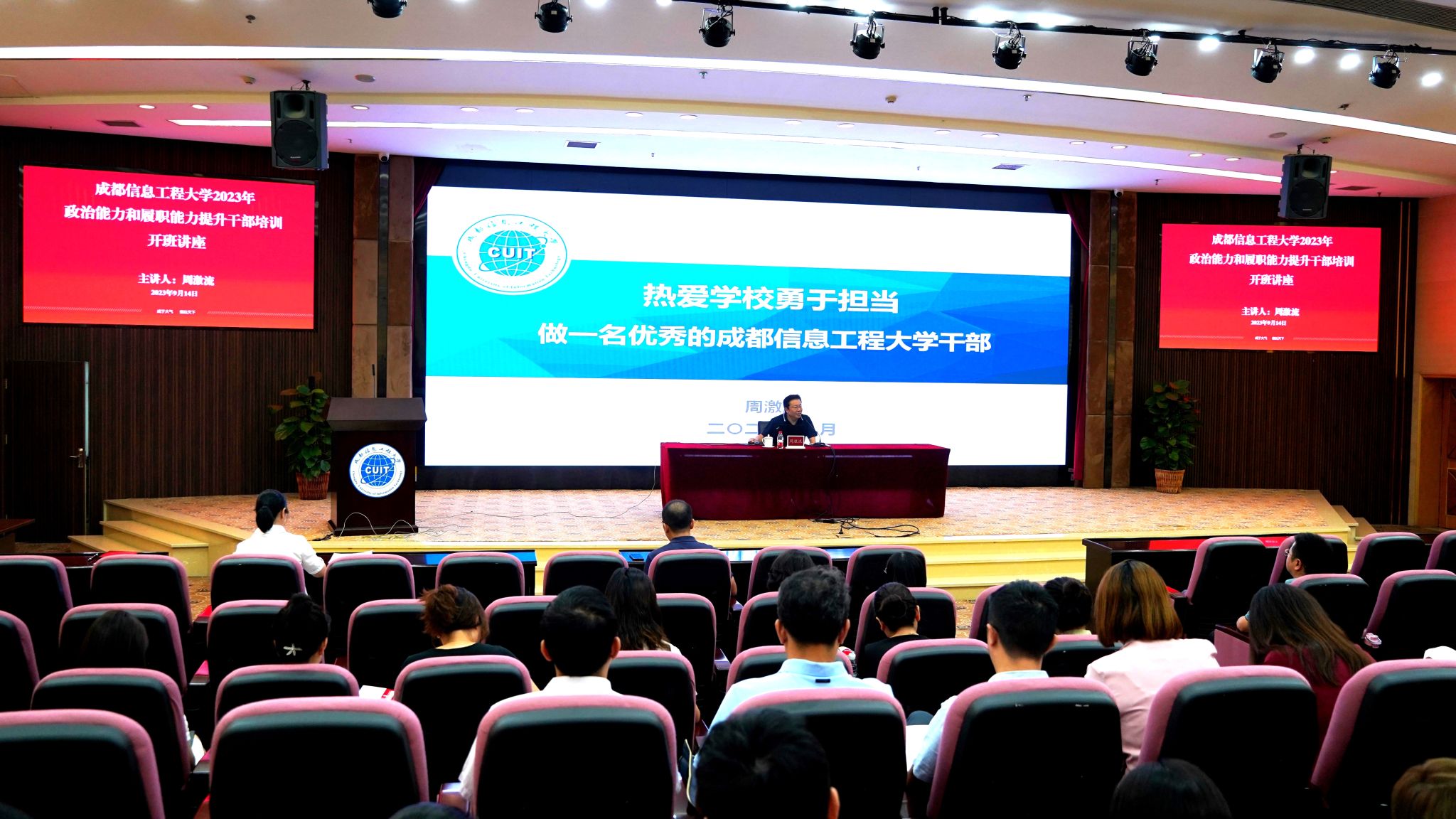 【本网讯】9月14日下午,在我校航空港校区国际会议厅,学校党委书记周激流为七十余名新提任中层、科级领导干部做了题为“热爱学校,勇于担当,做一名优秀的开云官方app下载站干部”的专题讲座。
