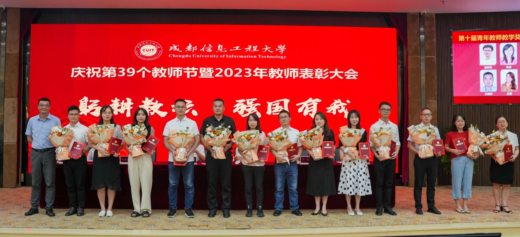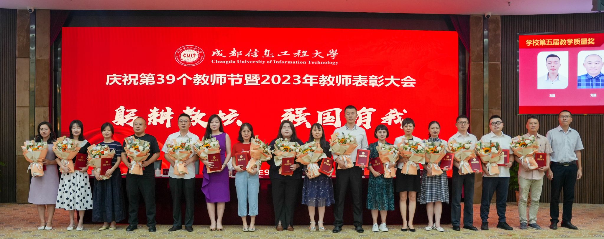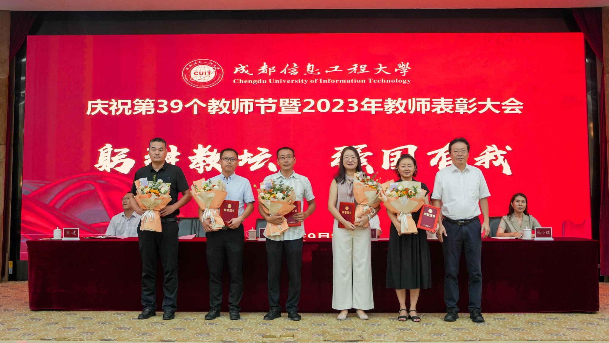 学校校长何建新宣读了表彰文件。学校对在人才培养、教学科研、服务社会等领域取得了突出成绩,为学校发展作出了卓越贡献的优秀教师作出表彰。周激流教授被授予“四川杰出人才奖”;资源环境学院刘志红教授获得“全国气象教学名师”称号;电子工程学院杨玲教授获得“四川省优秀教师”称号;大气科学学院陈科艺老师获得四川省“四有”好老师称号;乔少杰、张辉2名教师获得“省级人才”称号;李孝杰等3名教师新增为“四川省学术和技术带头人后备人选”;杨强等5名教师获得第六届全国高等学校电子信息类专业青年教师授课竞赛全国三等奖;魏维老师获得四川省普通本科高校教师教学创新大赛四川省三等奖;陈丁等9名教师获开云官方app下载站第五届 “优秀教师”称号;许东蓓等23名教师获得“校级教学质量奖”;崔林林等8名教师获得“青年教师教学奖”。学校还对本年度获四川省教育厅授予“光荣从教30年”称号的33名退休教师予以特别表彰。
