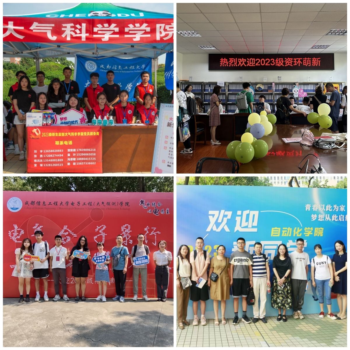 各学院为了迎接新成员用心安排布置了喜庆精美的合影墙、党员志愿服务、实验室作品展示、欢迎标语、吉祥物、签名板等学科特色鲜明、文化韵味十足的“见面礼”,让2023级同学的新起点、新面貌被共同见证和温馨定格。
