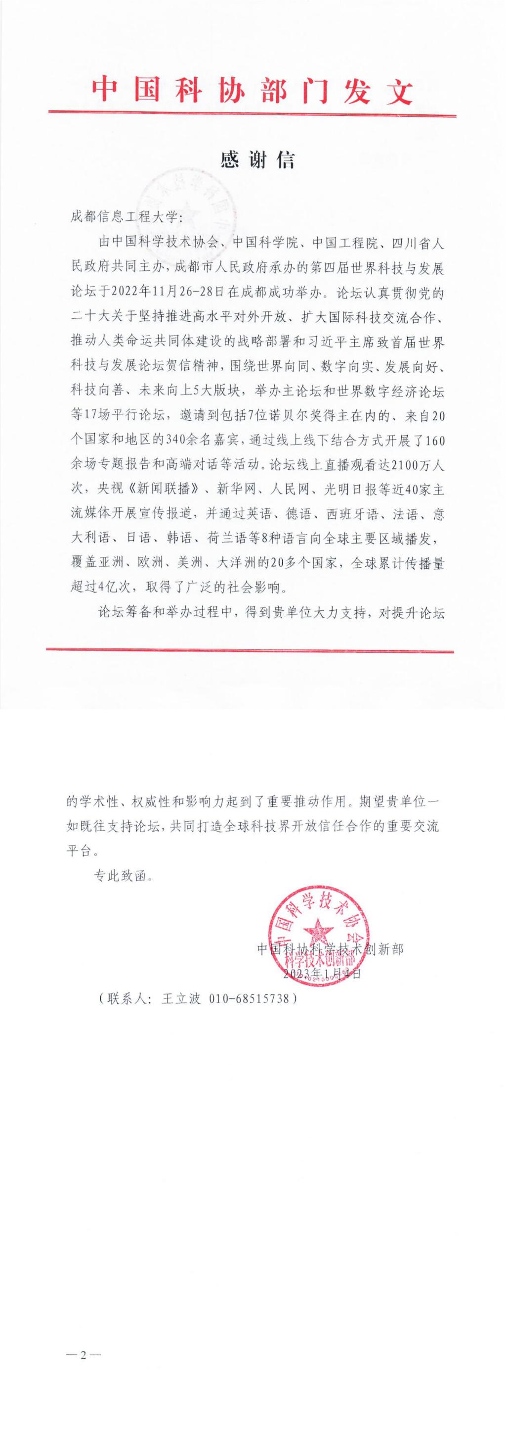 上一条:我校助力第四届世界科技与发展论坛收到成都市科协感谢信