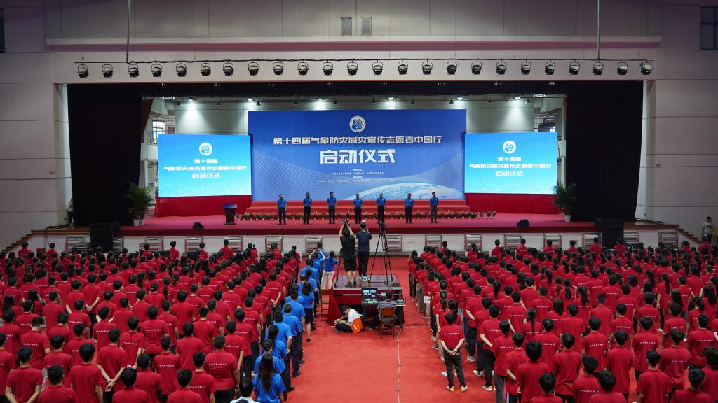 【本网讯】6月15日上午,由中国气象局、教育部、共青团中央、中国科学技术协会主办,开云官方app下载站、中国气象学会、中国气象局气象宣传与科普中心(中国气象报社)承办,各省区市气象局、气象学会、教育厅、团委、科协,南京信息工程大学等20所相关高校协办的第十四届“气象防灾减灾宣传志愿者中国行”活动启动仪式,在我校航空港校区体育馆举行。学校党委副书记马洪江主持启动仪式。