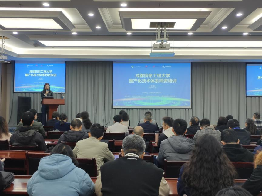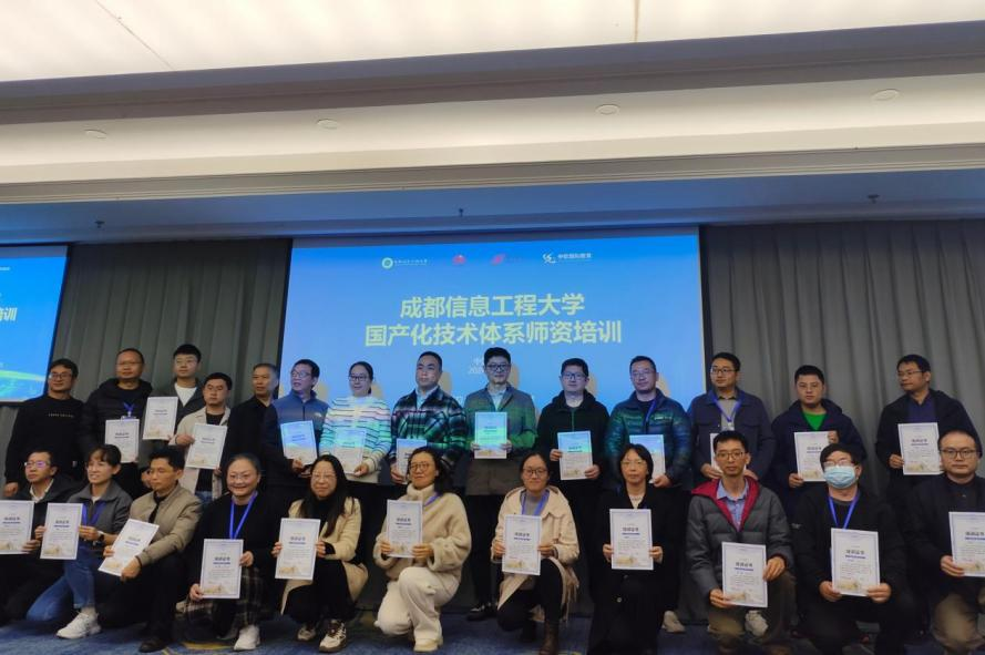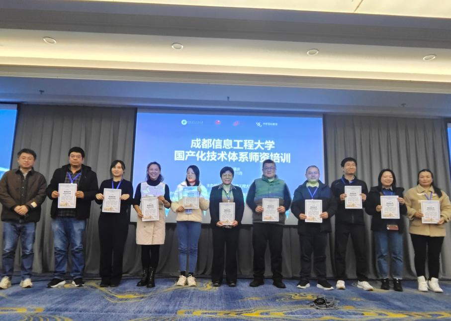 【本网讯】经过为期一周的集中式师资培训,由我校主办、华为技术有限公司和中软国际教育科技集团协办的国产化技术体系师资培训班于11月22日顺利结业,并举行了结业仪式,来自我校及西华大学、成都理工大学、成都大学、西南石油大学和西南科技大学的共56位教师参加了此次培训。