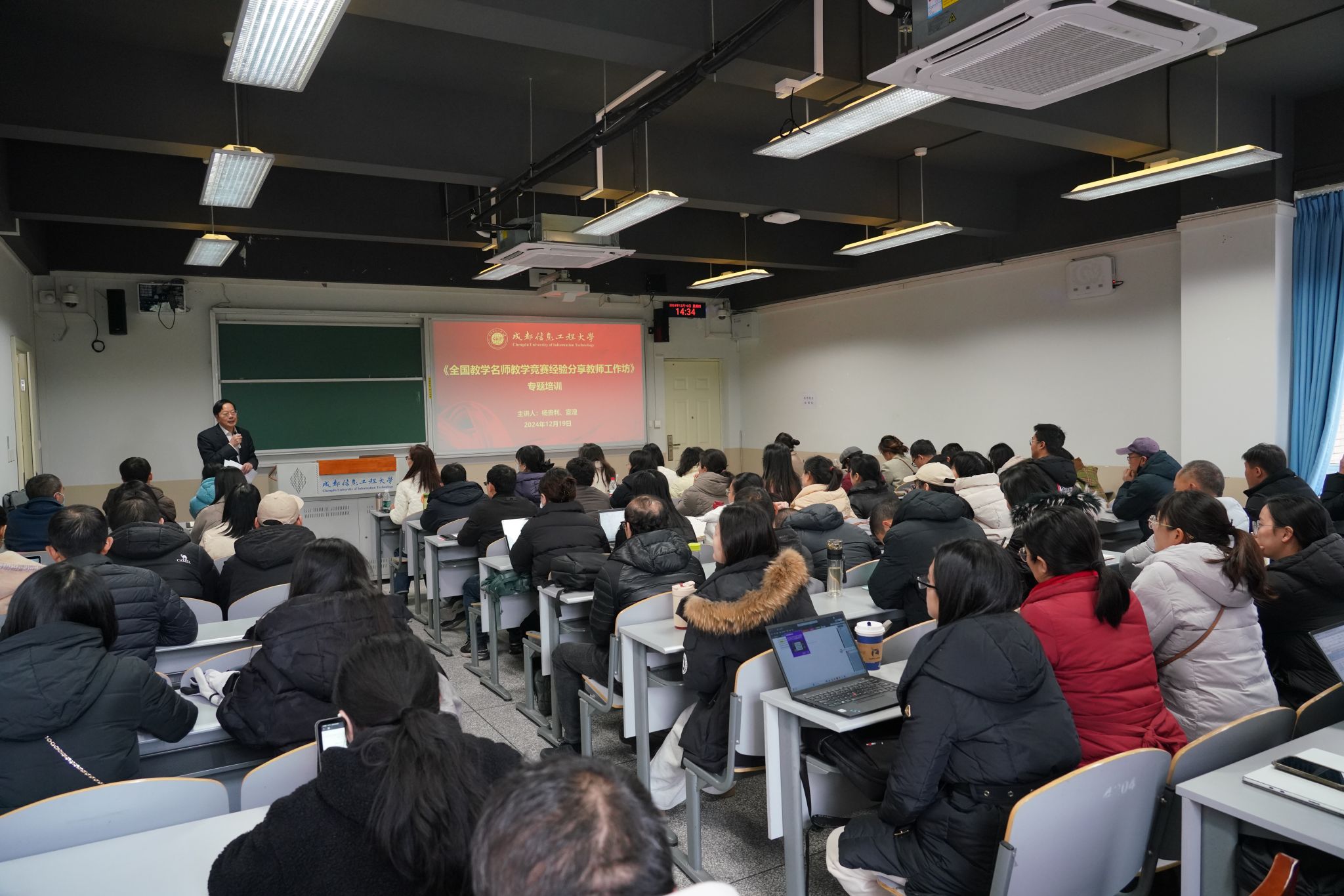 【本网讯】12月19日下午,人事处(党委教师工作部)在航空港校区第四教学楼举办“全国教学名师教学竞赛经验分享”教师工作坊,特邀贵州大学杨贵利副教授、西南交通大学宣湟副教授两位教学名师作专题培训。学校党委书记沈火明教授出席培训会并讲话,来自学校各教学单位的近 100名教师代表参与本次培训。培训会由人事处处长、党委教师工作部部长杜国宏主持。
