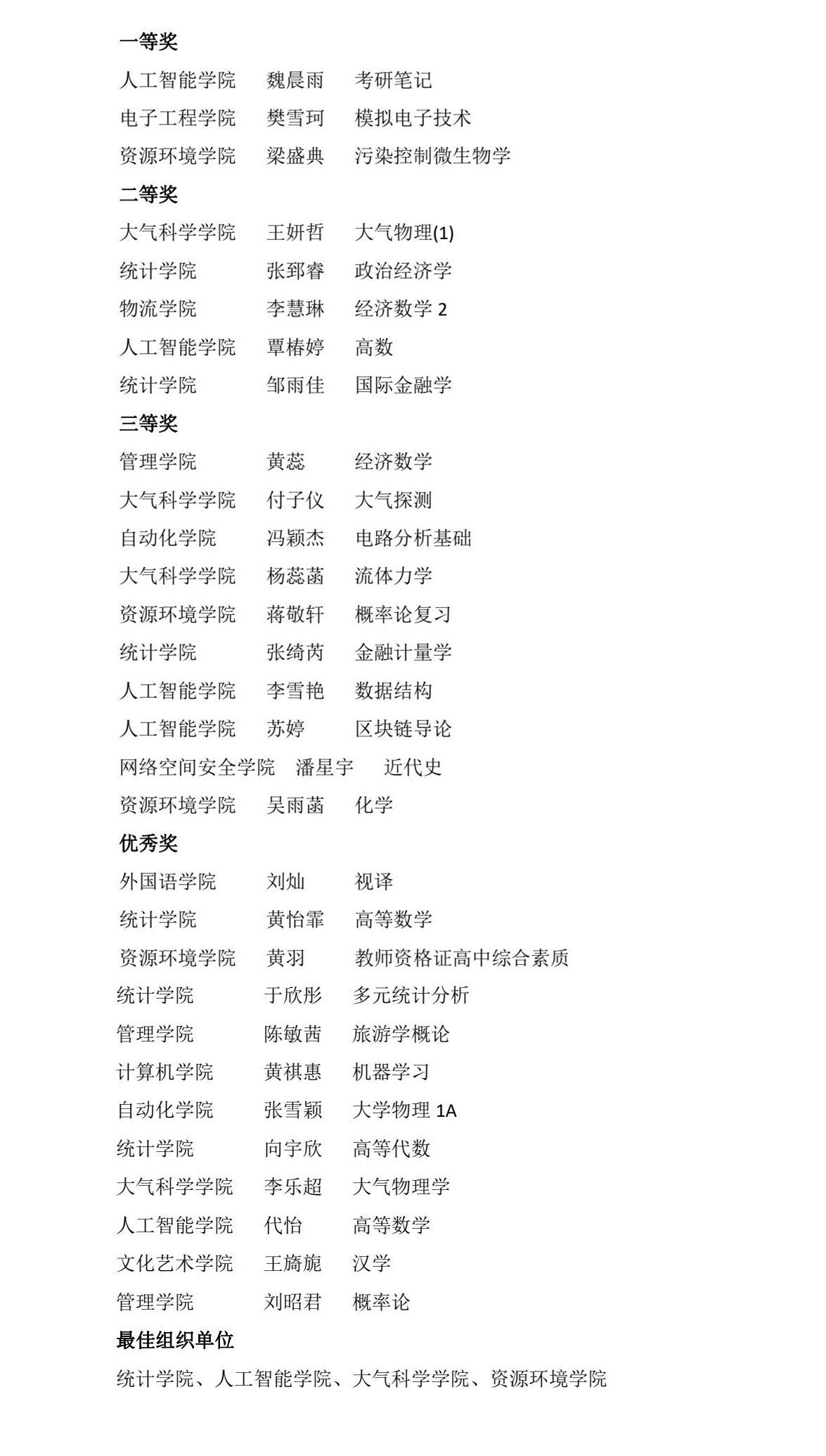 开云官方app下载站2024-2025学年第2学期学风建设月“第二课堂”精品活动之最美笔记大赛获奖名单