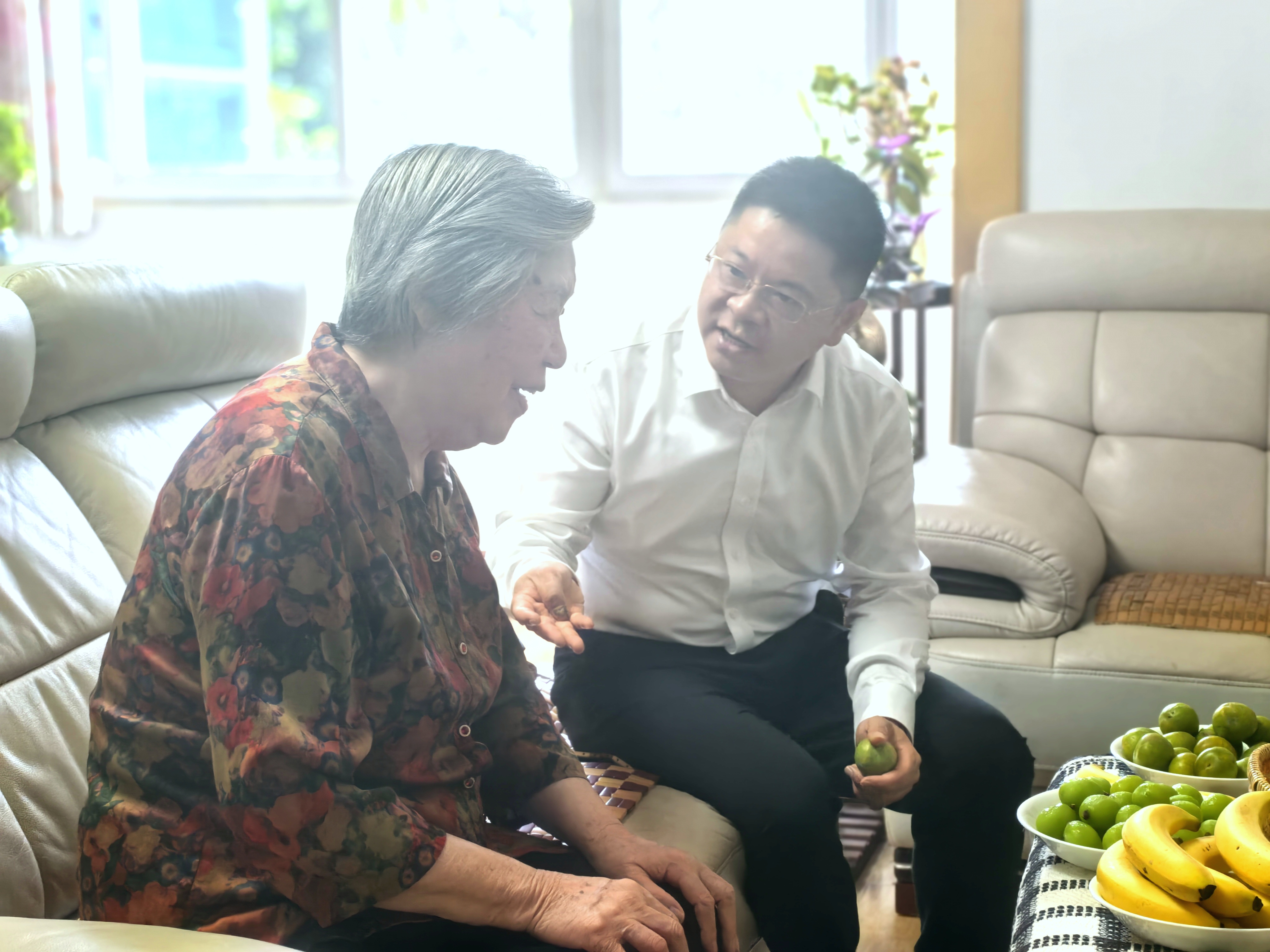 在走访慰问中,何晋关切地询问老师们的身体状况和日常生活情况,感谢学校离退休老师在学校发展建设中的辛勤付出和积极贡献。他介绍了学校在教学改革、学科建设、人才培养、基础设施建设等方面的新发展、新变化、新成就,听取离退休教师对学校发展建设的意见与建议。他与老师们共同回忆参与和见证学校事业蓬勃发展的经历。他表示老教师是学校的宝贵财富,他们的教育情怀和奉献精神是激励师生们不断前行的动力。