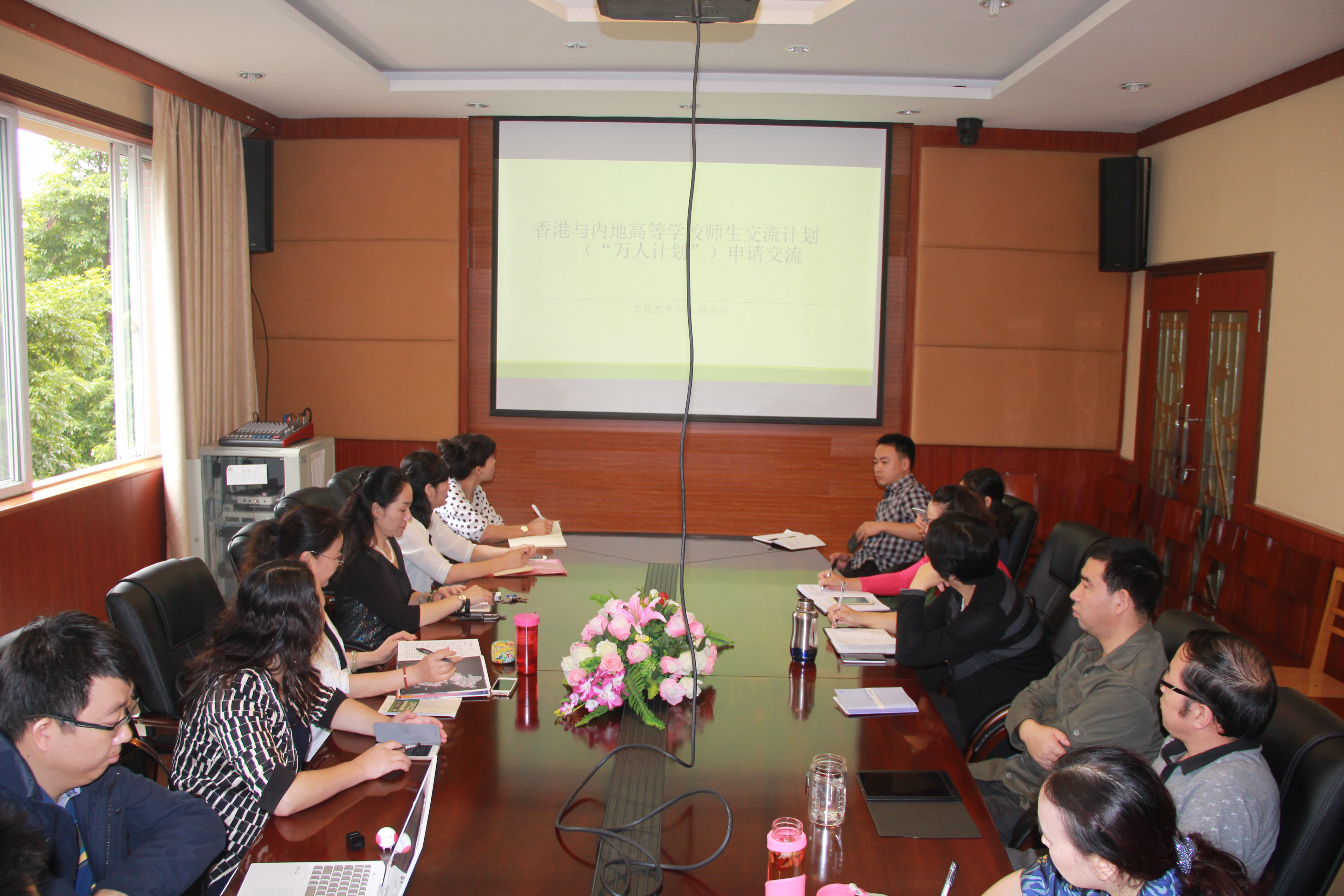【本网讯】9月23日上午,国际交流合作处段黔冰处长一行赴龙泉校区就香港与内地高校师生交流计划进行了宣讲,龙泉校区各学院院长及相关教研室主任参加了宣讲。