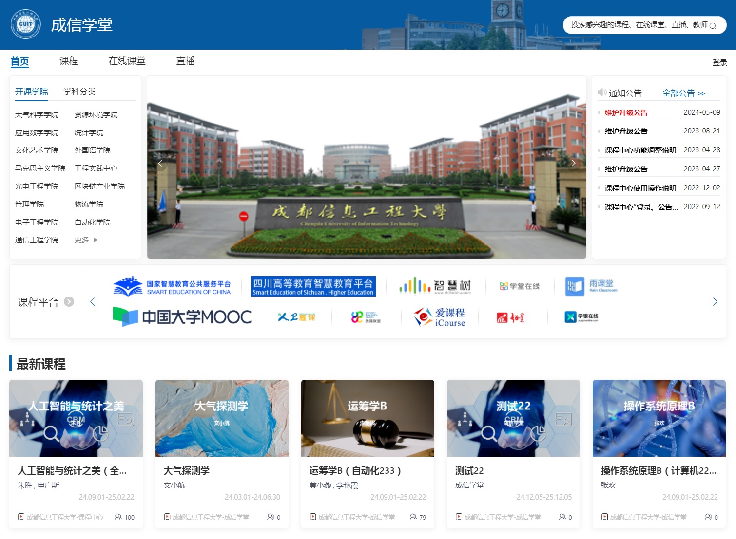 “成信学堂”已成为学校线上课程的采集、建设和运行管理的重要校本资源平台,成为教师线上建课、备课和开课的重要支撑,也是学校培育高水平线上课程和混合式教学课程的试验场,适应了不断变化的教育环境和师生教学需求。