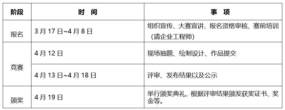2.赛题于比赛当天在赛场内随机抽取。参赛选手根据赛题在规定的时间内完成设计并按要求进行提交。