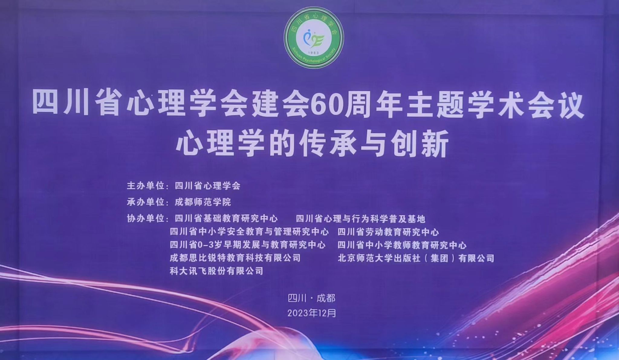 【本网讯】为贯彻习近平新时代中国特色社会主义思想,落实党的二十大精神,推动四川省心理学学科及社会服务的发展,四川省心理学会于12月1—4日在成都师范学院召开“心理学的传承与创新”——四川省心理学会成立60周年主题学术会议,我校文化艺术学院教授徐砺和心理健康教育中心副主任李嘉雯参会。