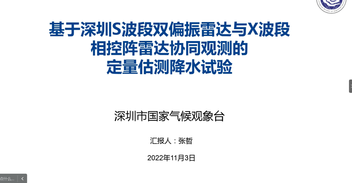 张哲做《基于深圳S波段双偏振雷达与X波段相控阵雷达协同观测的定量估测降水试验》