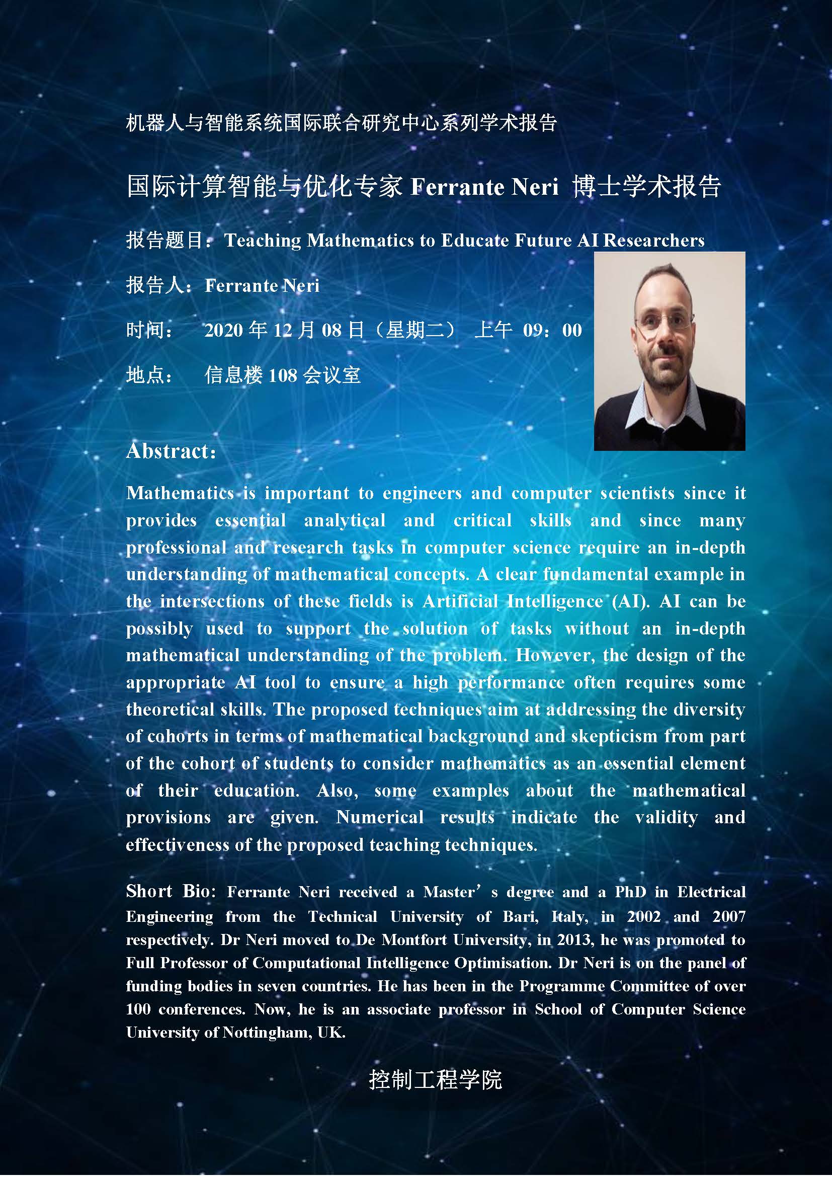 上一条:国际联合研究中心系列学术报告3预告:国际数学与智能计算专家 Prithwineel Paul 博士学术报告