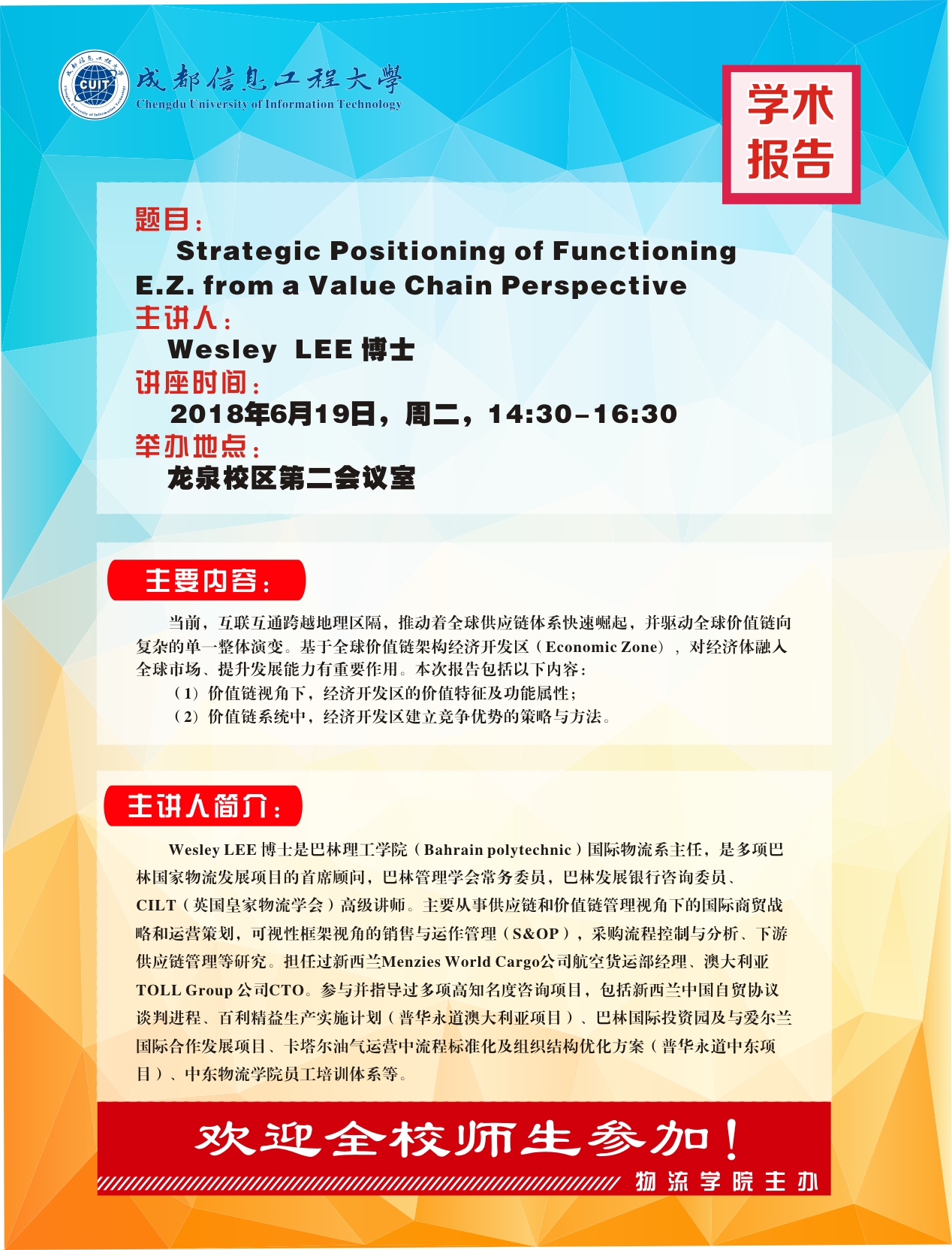 来源:物流学院 作者:袁波日期:2018-06-15 审核:新闻中心 点击: