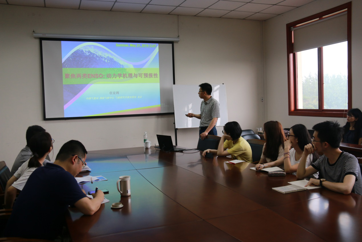 【本网讯】 5月21日上午,国家气候中心首席、中国气象局气候研究开放实验室副主任、中国气象科学研究院任宏利应大气科学学院邀请,在气象楼310会议室作题为《聚焦两类ENSO:动力学机理与可预报性》的学术报告。本次学术报告由华维副教授主持,大气科学学院师生积极参加。