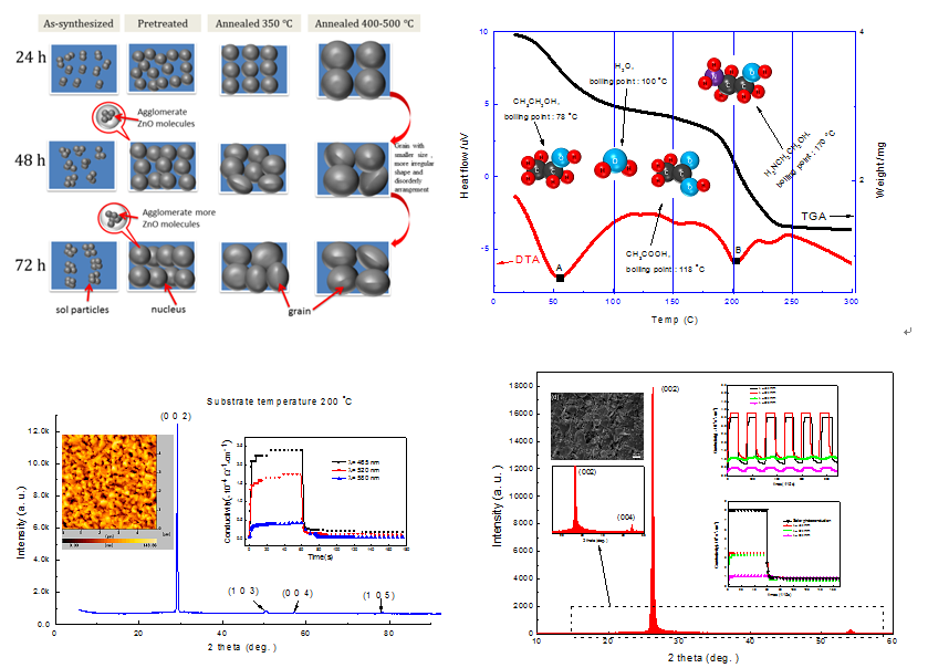 该生在研一下学期进入我校“信息材料及器件化应用”省高校重点实验室“光电材料与器件”研究团队,在导师杨定宇教授及团队负责人朱兴华教授的指导下,系统开展氧化锌(ZnO)、硫化镉(CdS)等宽带隙半导体低维纳米材料的生长机制、特性及器件化应用研究。该项工作首次揭示了陈化时间和热处理工艺对溶胶-凝胶法制备ZnO纳米材料及器件性能的关联影响,以及预处理期间物理化学反应对ZnO纳米材料光电性能的调控机制;同时,深入研究基于CdS薄膜的光电探测器制备及光电响应性能,通过优化后处理工艺改善CdS纳米薄膜的微结构特性,有效提升了器件的光电响应灵敏度及响应速度。