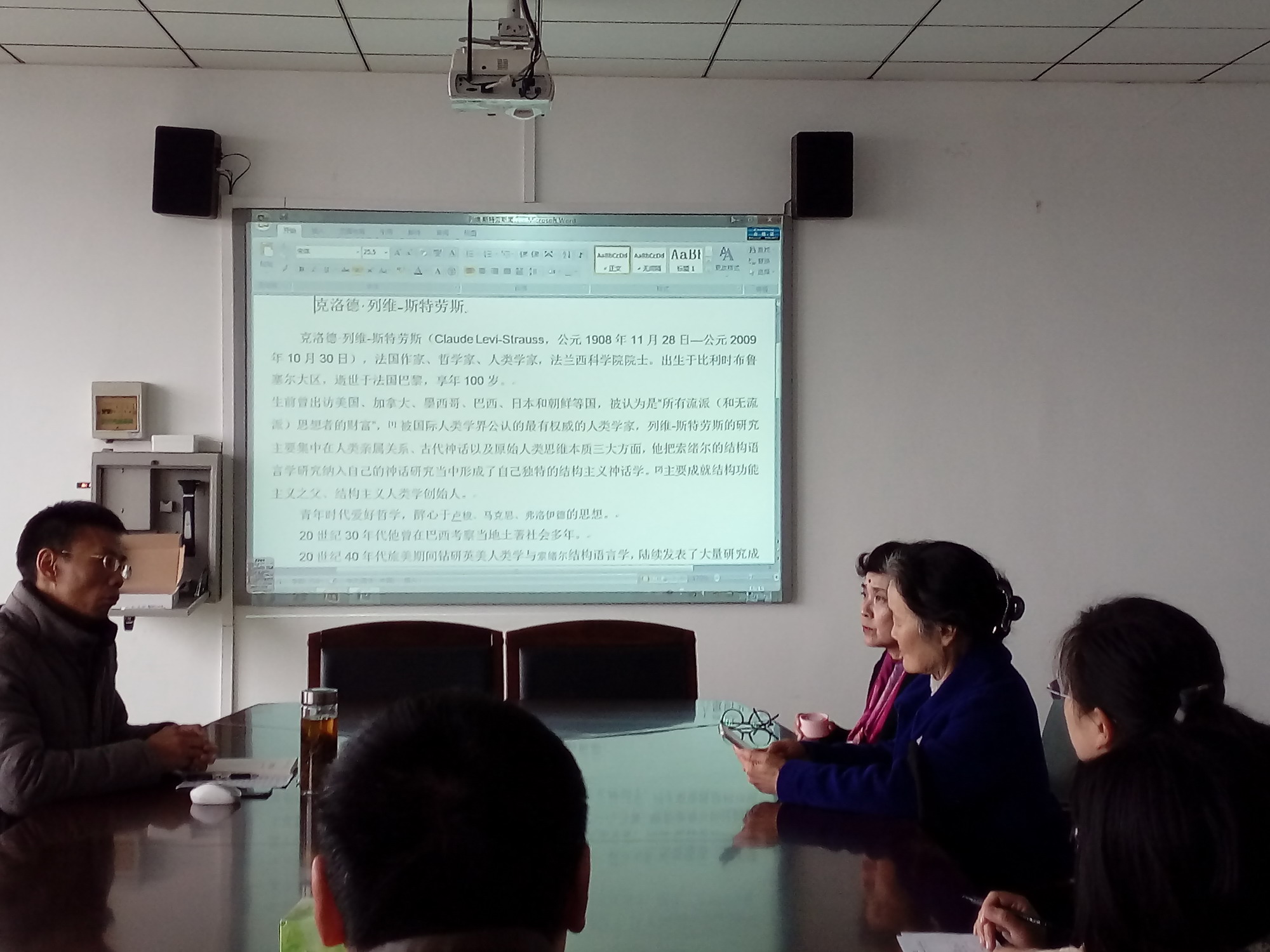 【本网讯】12月13日下午,马克思主义学院院长龚秀勇教授在信息楼六楼学院学术交流室做了题为列维·斯特劳斯《图腾制度》的一些思考与启示的学术讲座。