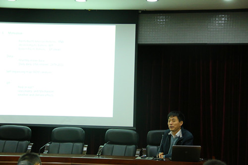 【本网讯】12月1日上午,北京大学谭本馗教授、中国科学院陈文、周广庆研究员应邀来我院,分别作了题为《北太平洋东部型遥相关及其成因》、《东亚冬季风年际和年代际变化——ENSO的作用》、《欧亚大陆冬季积雪变化与我国夏季气候异常的关系》的学术讲座。讲座由大气科学学院院长范广洲主持,大气科学学院120余名师生前来听讲。
