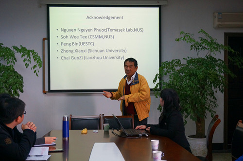 【本网讯】11月25日上午,应光电技术学院邀请,新加坡国立大学翁宗经教授及四川大学钟小溪博士来我院交流,并在信息楼312做学术报告。光电技术学院院长朱兴华、院长助理彭龙及部分教师、研究生参加了报告会。