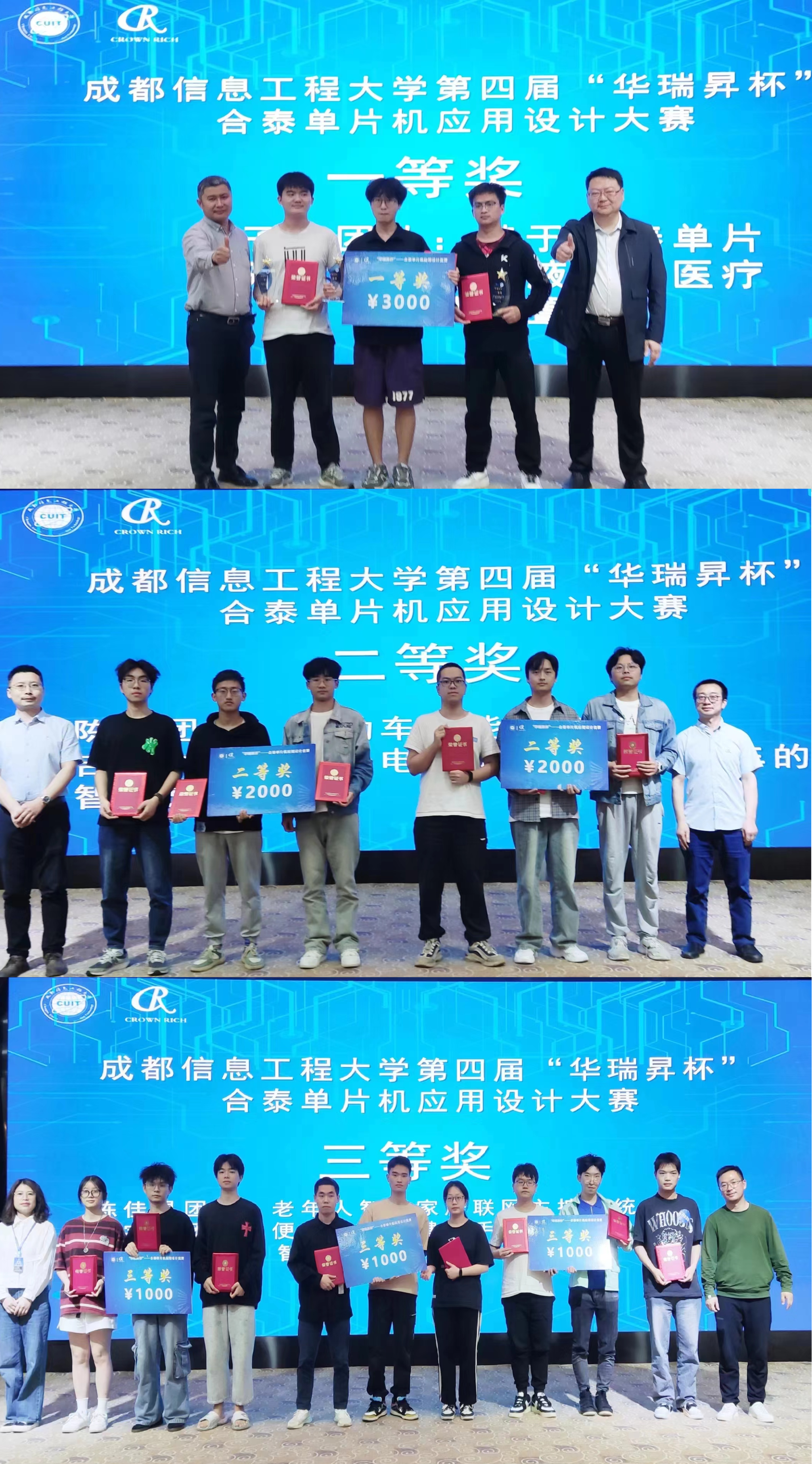 徐兵对大赛的圆满成功表示祝贺。他表示“华瑞昇杯”展现了当代大学生的专业水平和精神面貌,向所有在背后支持大赛的老师和同学们表示衷心的感谢,期待有更多同学参与到这一竞赛中来,通过竞赛获得更大的成长和进步。通过参与“华瑞昇杯”,同学们对合泰单片机以及华瑞昇的各种模组产品有了更深入的了解和认识。这将有助于同学们在未来的工作岗位上迅速适应,并以最短的时间投入到工作状态中,为自己、企业和社会创造更多价值。