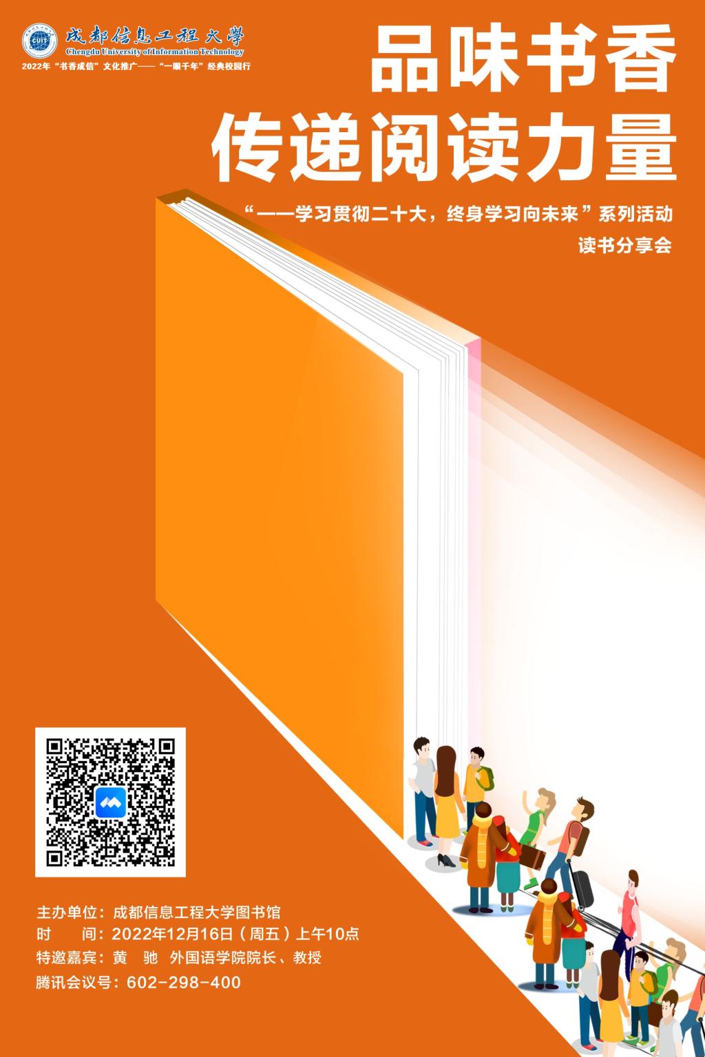 图书馆副馆长马小林在致辞中提到,国家之魂,文以化之,文以铸之。我们将按照党的二十大提出的文化自信和文化自强的要求,在全校文化推广、全民阅读,共建书香成信上提升品牌意识,增强服务能力,做好传承创新,砥砺前行。