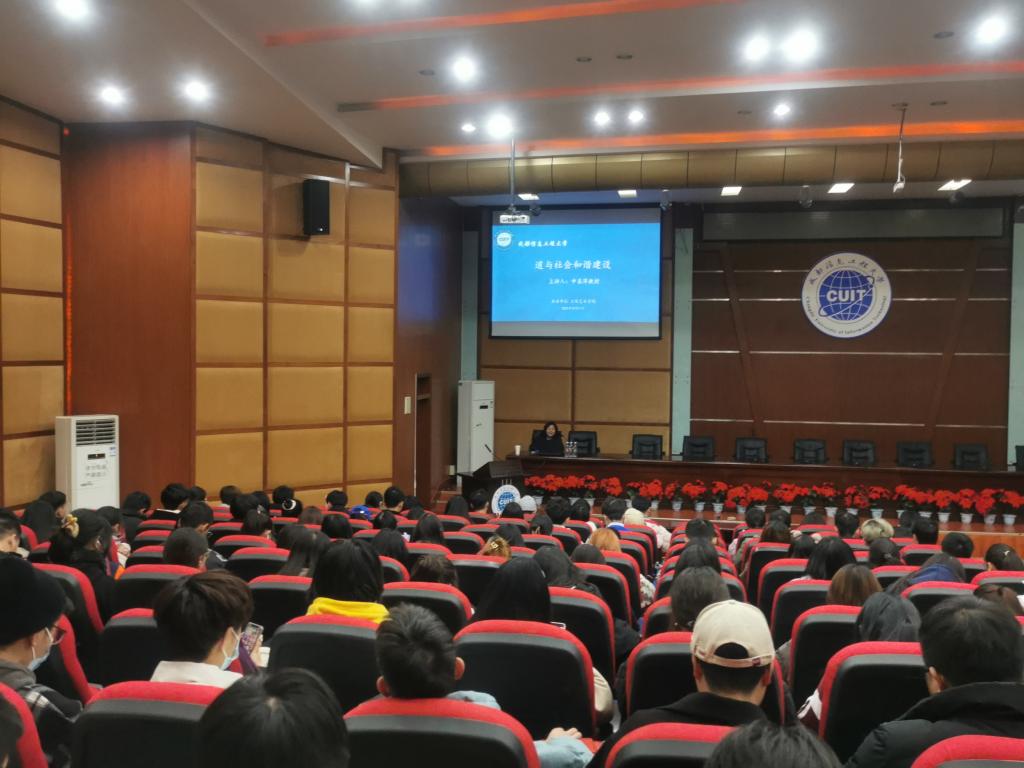 【本网讯】12月17日下午,文化艺术学院于龙泉校区第三教学楼学术报告厅开展了以“道与和谐社会建设”为主题的第二课堂审美修养与艺术体验专题讲座。讲座由文化艺术学院党委书记刘敦虎主持,四川师范大学文学院博导申喜萍教授主讲,龙泉校区各学院学生参加。