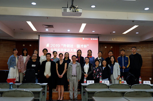 【本网讯】2019"外研社·国才杯"全国英语演讲大赛(开云官方app下载站初赛)于2019年10月9日晚19:00在学校航空港校区学术报告厅顺利举行。本次比赛由外语教学与研究出版社主办,由我校教务处和外国语学院承办,外语俱乐部协办。外国语学院党总支书记杨昊、院长黄驰、副院长卢婕作为嘉宾出席大赛,副院长周杰、外国语学院教师吴玉华、邓圆、吴倩、外教Wilbur和Ashley担任此次大赛评委。