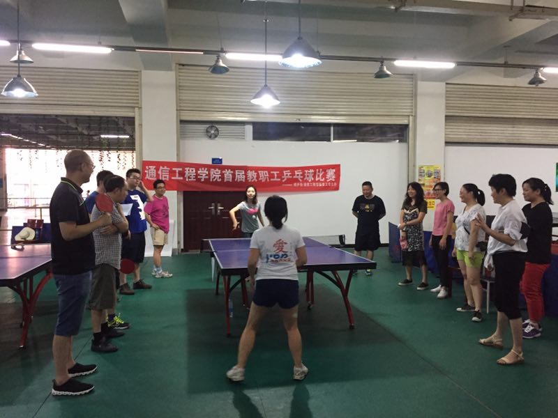 【本网讯】为丰富我院教职工体育文化生活,推动全民健身运动,通信工程学院分工会于6月8日下午在体育馆负一楼乒乓球场成功举办了学院首届教职工乒乓球比赛。