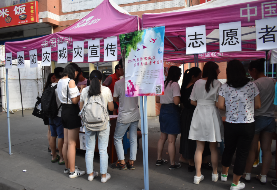 【本网讯】5月27日,2017年“气象防灾减灾宣传志愿者中国行”志愿者招募活动在我校落下帷幕。来自我校各专业的千余名同学报名参加了“气象防灾减灾宣传志愿者中国行”活动。