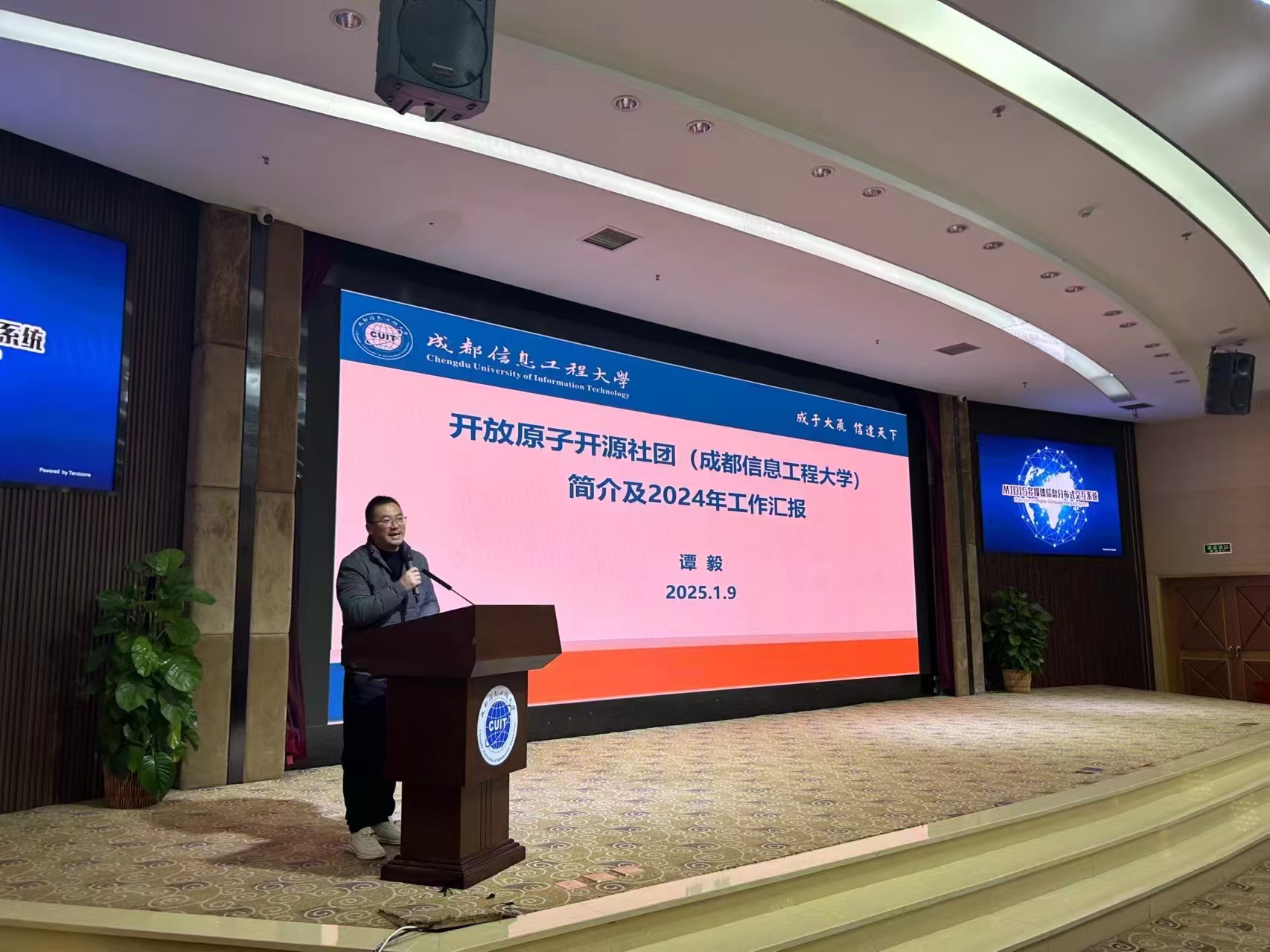谭毅围绕着开源社团(开云官方app下载站)的成立过程、性质定位、活动开展、相关成果及2025年工作重点进行总结。开放原子开源社团(开云官方app下载站)在校团委的管理和指导下,在2023年3月31日,由开云官方app下载站通信工程学院(微电子学院)向开放原子开源基金会申请,并于同年10月正式挂牌成立。依托通信工程学院(微电子学院)大学生创新实验室,经过一年的建设和发展,现拥有工程实践创新实验室(信达楼B606)、活动及成果展览室(信达楼B609-1)以及社团常务办公室(第一教学楼1205-1)三个场地,建立起完善的组织机构、社团章程和财务管理制度。在2024年度,社团举行了多场开源活动,受到社团成员以及开源爱好者的广泛关注和积极参与。同时,在2024年开放原子校园行“春耕计划”活动中,我校被评为“优秀组织高校”;在2024年度高校社团验收中被授予“‘校源行’活跃社团”称号。2025年,社团将在“对外合作、开源竞赛以及开源人才认证”等方面重点开展工作,进一步提升我校开源活动的品质和开源成果的产出。