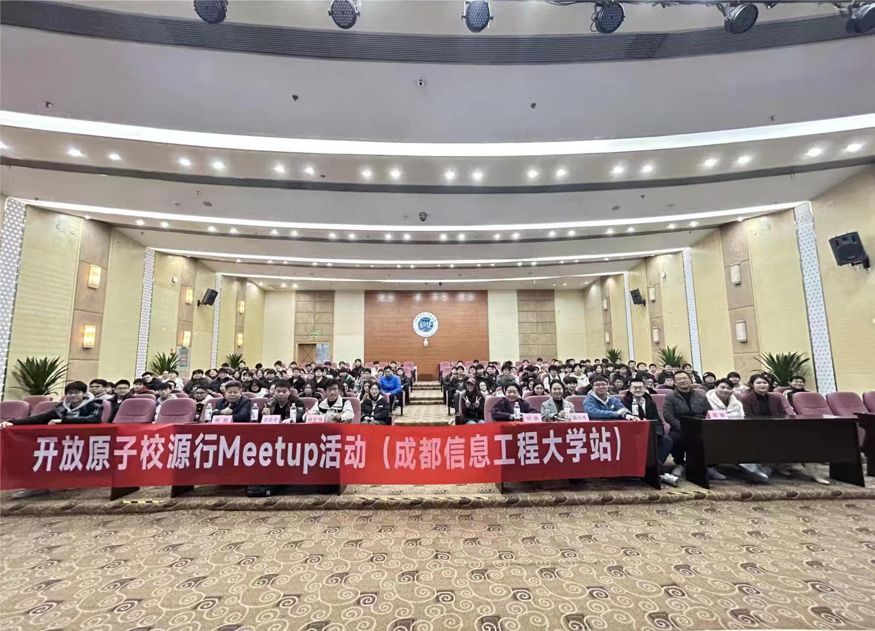 【本网讯】1月9日,开放原子校源行Meetup活动(开云官方app下载站站)在我校国际会议厅成功举行。本次活动是在开放原子开源基金会的支持下,在学校教务处、校团委的推动下,由通信工程学院(微电子学院)承办。校团委副书记尹欣,蜀鸿会创始人、华为技术开发专家、开放原子校源行开源讲师唐佐林先生,通信工程学院(微电子学院)教授陈超,开放原子校源行开源大使、全国开源鸿蒙产教融合共同体执行秘书连志安先生,软通教育产品中心负责人、Open Harmony教育工作组副组长刘静女士,通信工程学院(微电子学院)团委书记盛小芳和通信工程学院(微电子学院)大学生创新实验室主任、学校开放原子开源社团负责人谭毅老师出席了本次活动。
