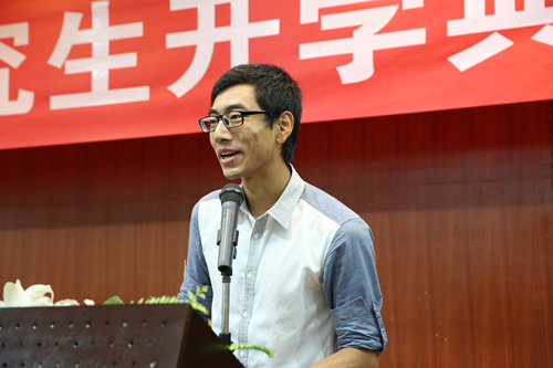 计算机学院2013级的郭亚玲同学代表高年级研究生,大气科学学院姚世博同学代表研究生新生作了发言。