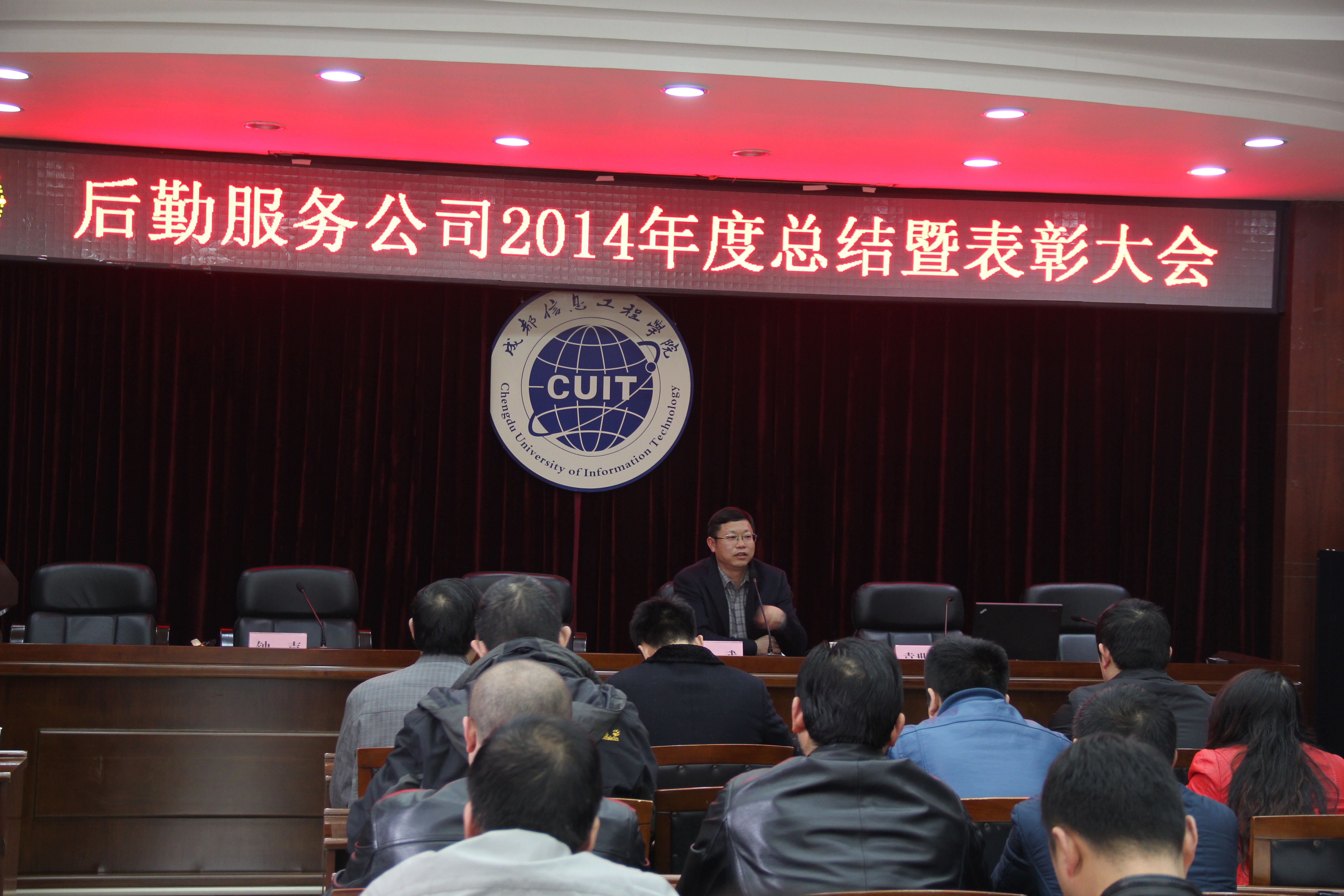 【本网讯】3月13日下午,后勤服务公司2014年度工作总结暨表彰大会在行政楼一会议室召开。学校副院长向武,后勤管理处处长羊裔高,后勤服务公司总经理袁世斌、副总经理钟声、刘东,公司全体优秀员工及部分员工代表出席本次会议。会议由钟声主持。