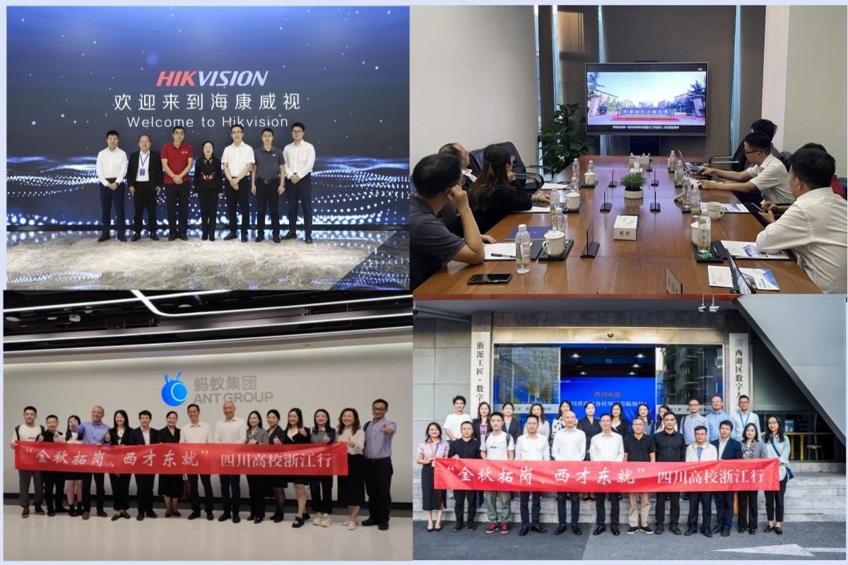 浙川东西部协作联合访企拓岗活动优秀校友座谈会上,罗小蓉代表学校向四川高校在浙优秀校友们介绍了学校的整体情况,近些年在浙就业情况和2024届毕业生生源信息,并期待能与各校友企业在实习就业、人才培养、科学研究以及平台建设等方面加强合作。活动期间,学校人员还实地走访了蚂蚁集团、浙派工匠·数字人才基地等单位。