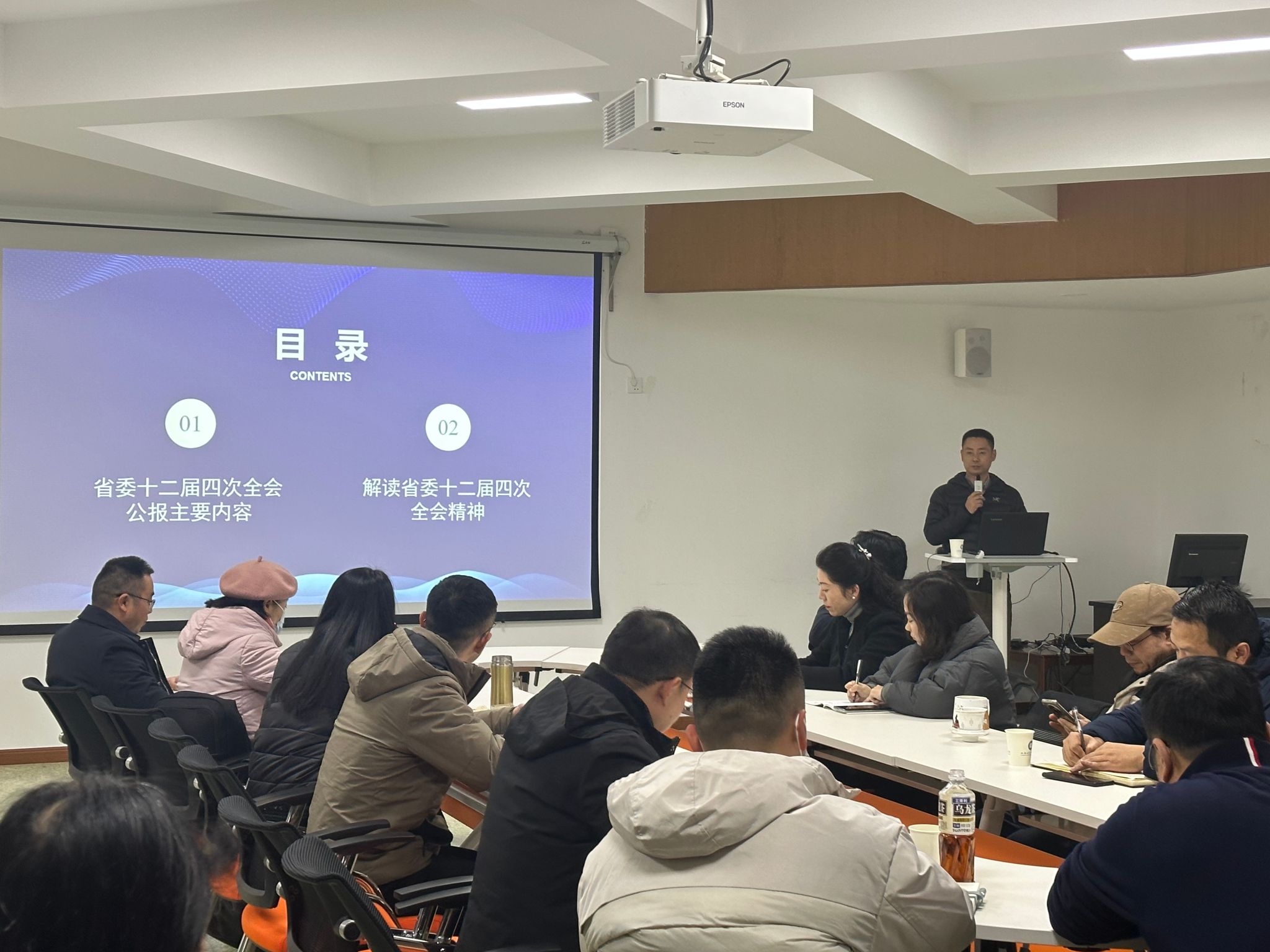 【本网讯】12月29日上午,学校副校长陈权亮在应用数学学院多功能会议厅开展省委十二届四次全会精神专题宣讲。机关党委、学生工作处、保卫处、离退休工作处、招生就业处、校工会、校团委、应用数学学院、管理学院、体育部相关人员参加。