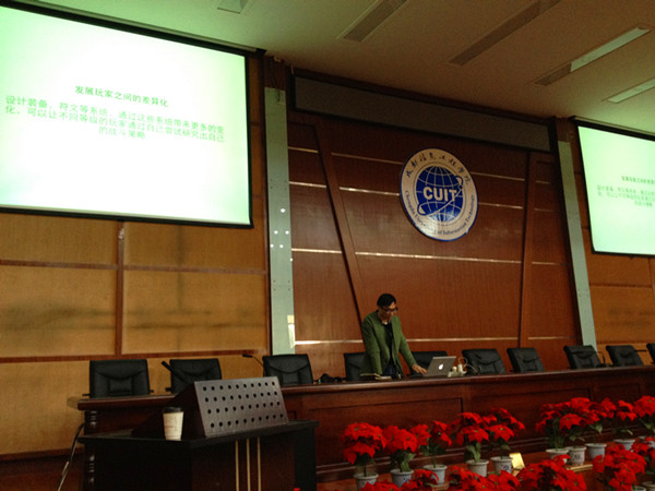 讲座中,邹先生以生动的视觉设计符号和游戏场景进行展现,并配合手机游戏案例的播放分析和相关理论知识的介绍,就当前炙热的手机游戏设计展开讲解。主要涉及三个方面的内容:第一,当前手游的发展历史,现状及趋势;第二,手机游戏设计案例分享;第三,手机游戏的体验设计。