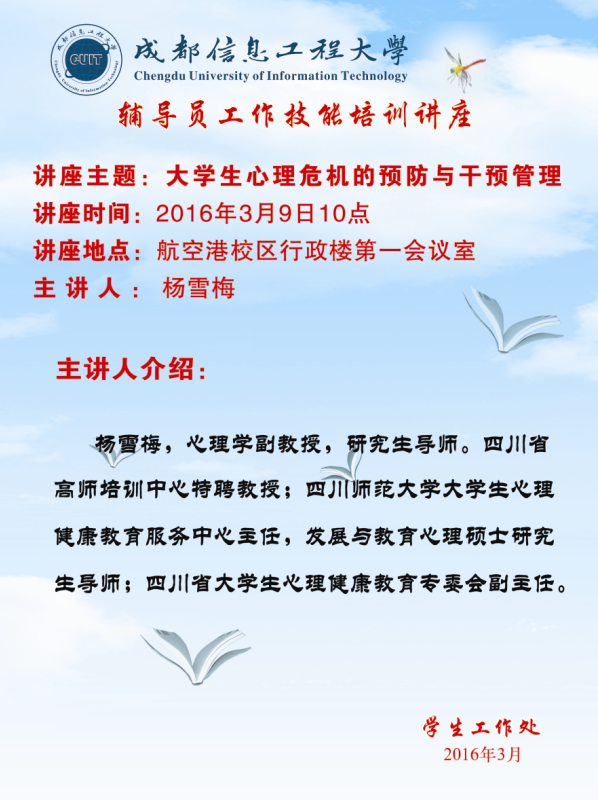 【讲座预告】辅导员工作技能培训讲座